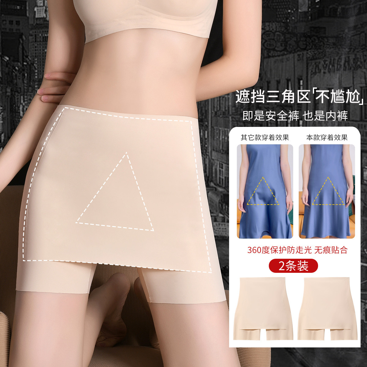 【加大遮挡 防尴尬】2条装收腹提臀安全裤亲肤柔软舒适弹力不勒 911646