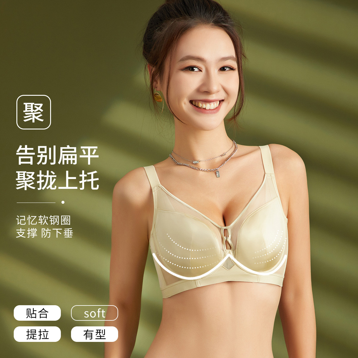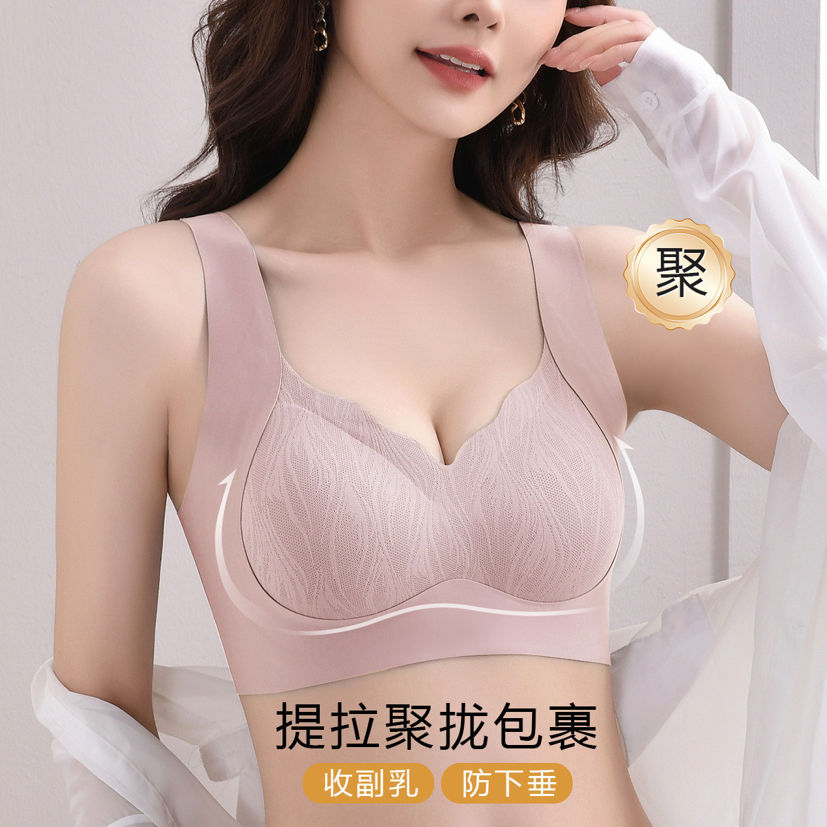 【聚拢收副乳 羽翼杯】无痕高弹不空杯无钢圈文胸一体式女内衣女 888990