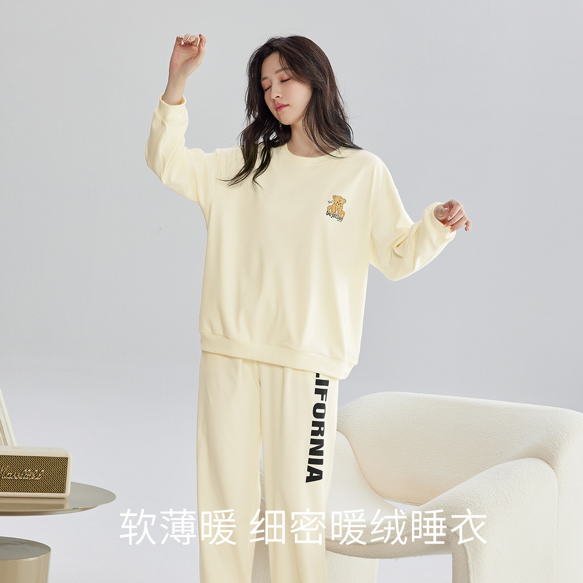 【双面磨毛280G】简约熊舒适女士睡衣可外穿运动风家居服套装 611339