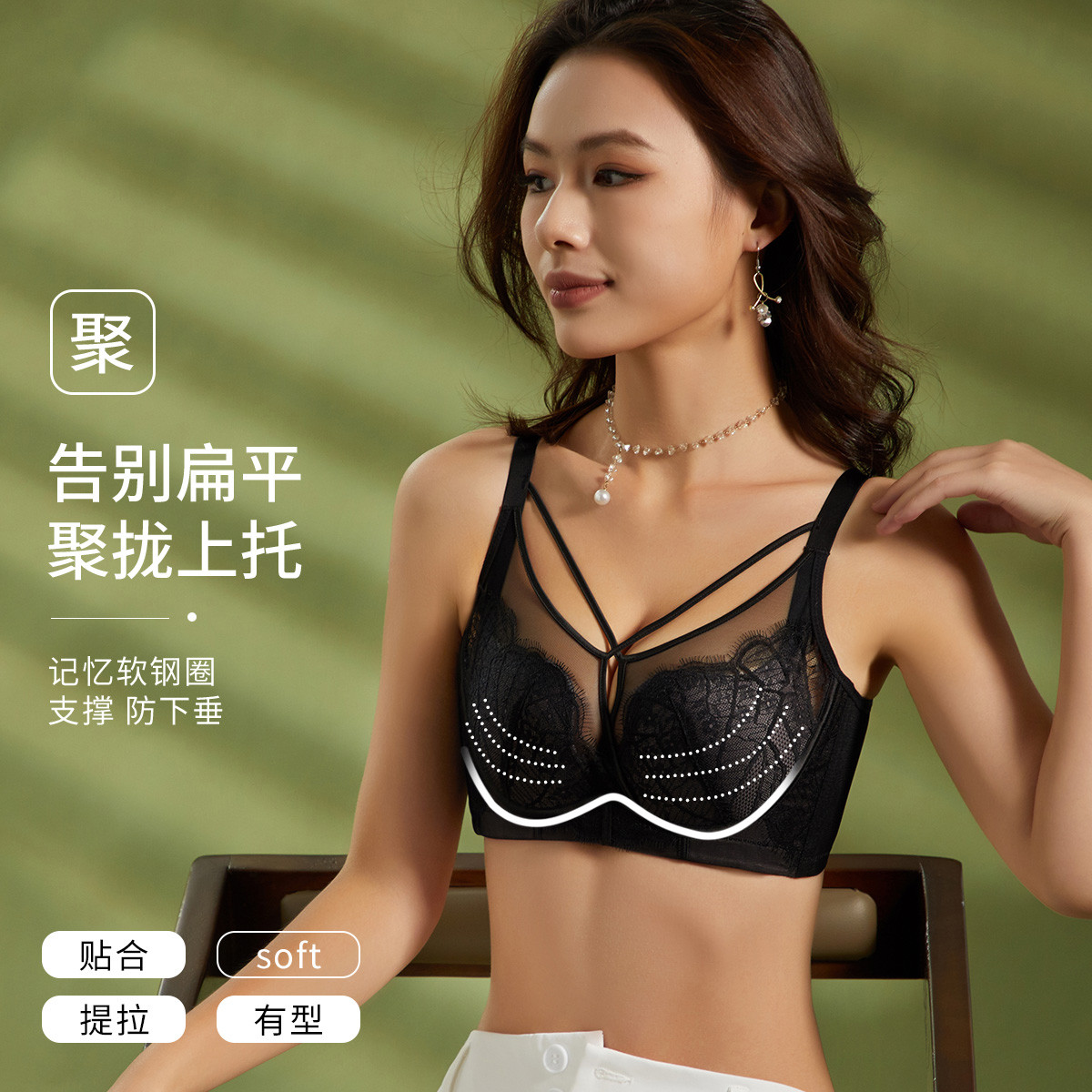 【捡漏款】性感聚拢舒服透气薄款上托提拉美背3/4文胸罩内衣女 189579