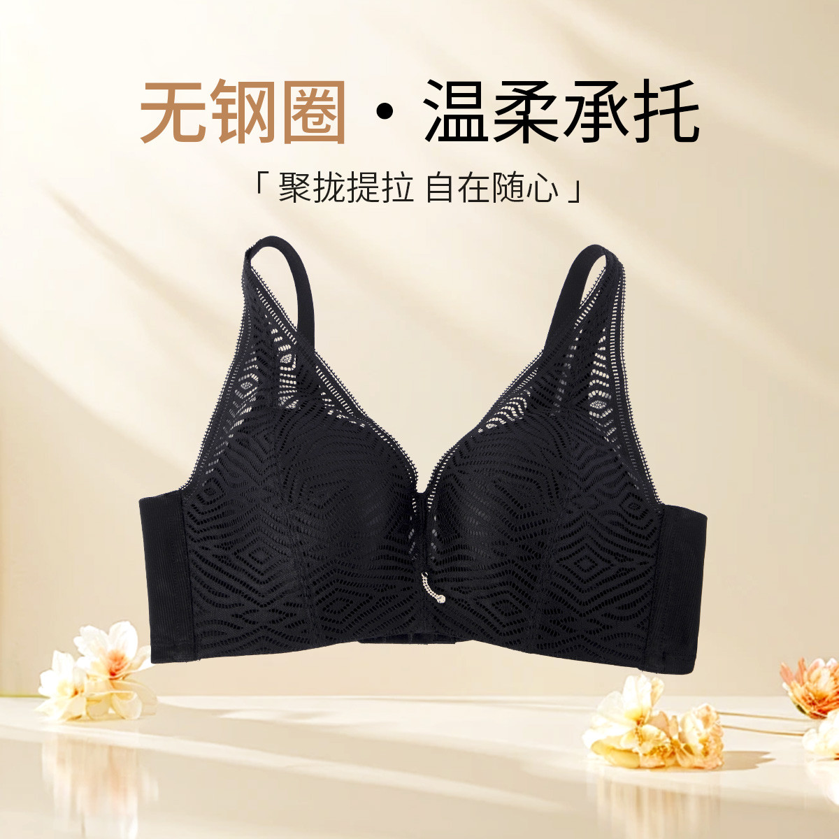 【聚拢大胸显小】性感美胸薄纱蕾丝调整型胸罩上托防下垂内衣文胸 193419