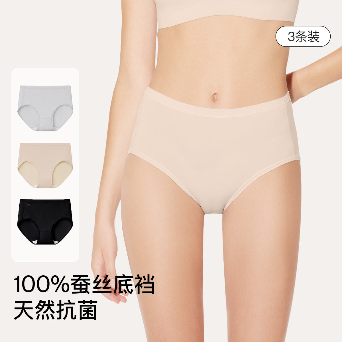 【抗菌底裆】纯桑蚕丝高腰内裤无痕薄款三角裤女士3条装夏季 899072