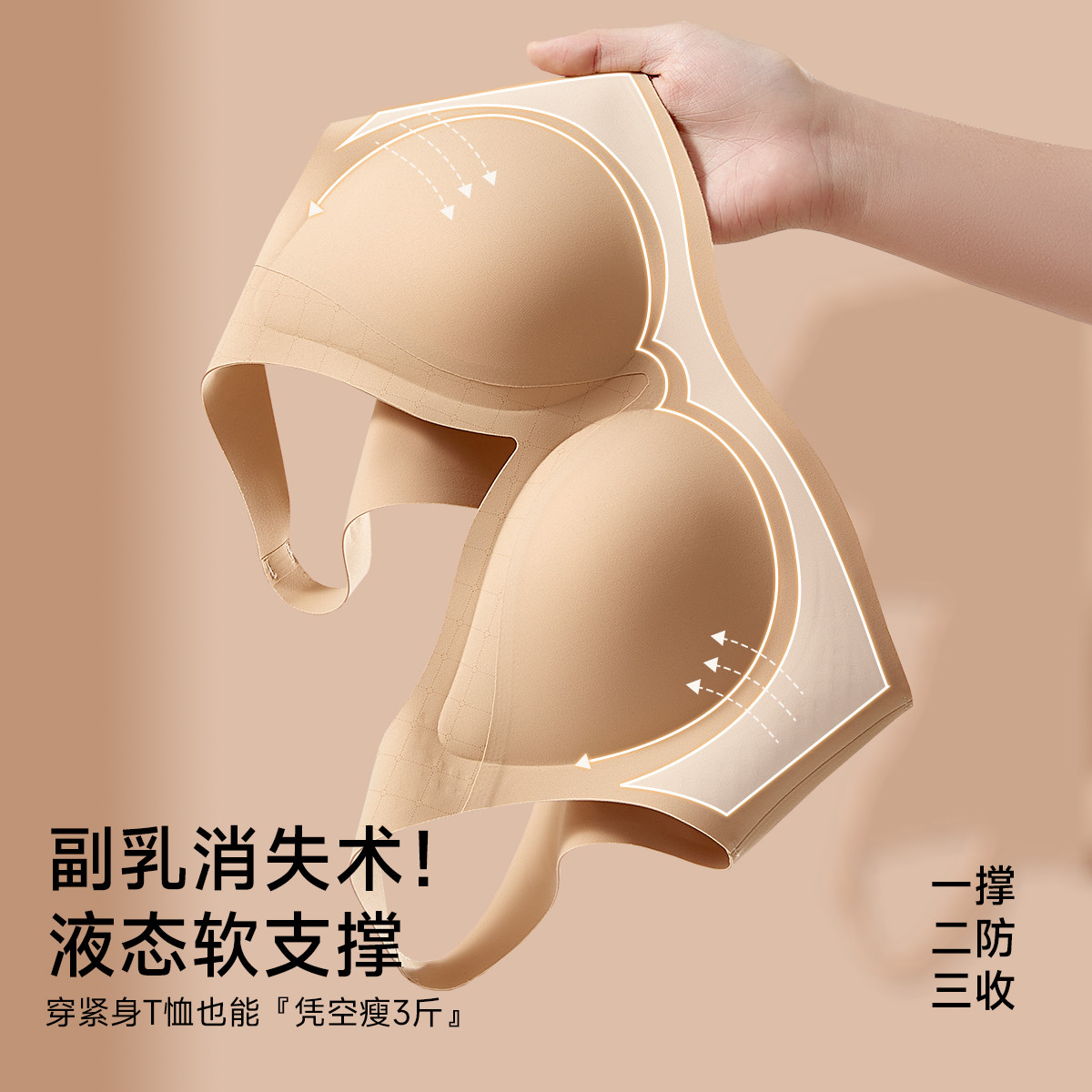 【强收副乳】上托舒适无痕美背液态软支撑内衣女士无钢圈文胸罩女 398347
