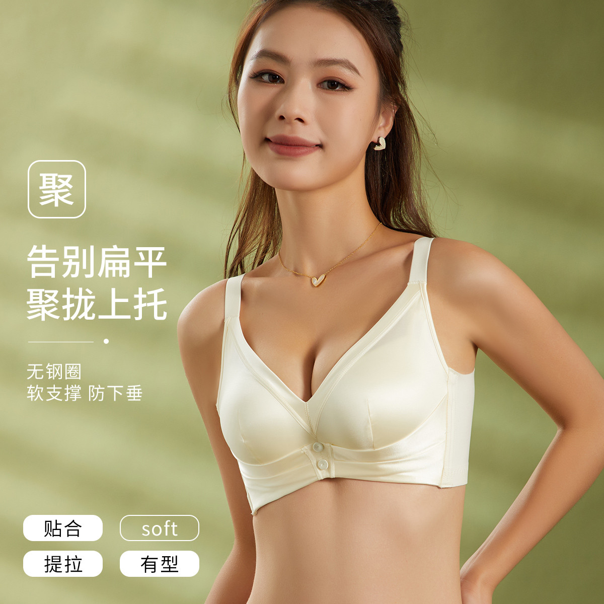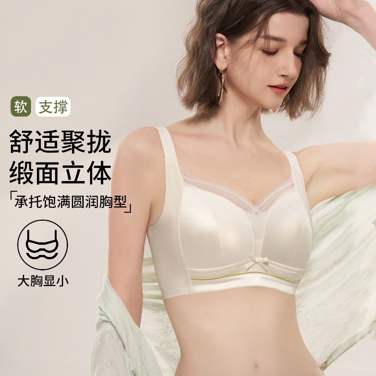 【柔软缎面】大胸显小内衣女士文胸无钢圈薄款聚拢防下垂收副乳 662091