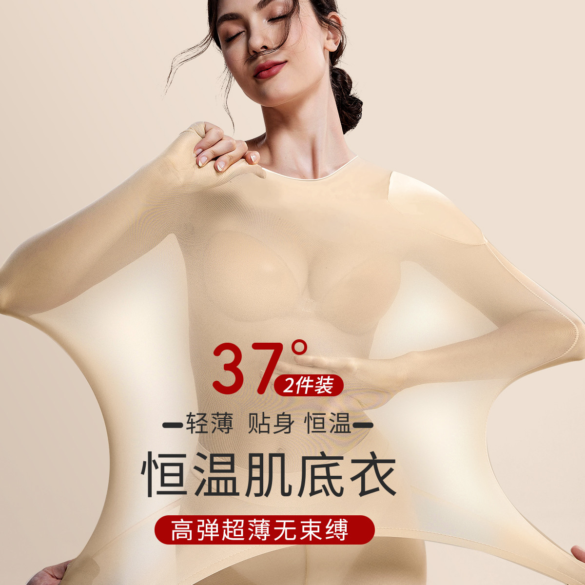 2件装蓄热肌底衣内衣女士秋衣圆领修身美肤衣女士保暖打底衫上衣 093790