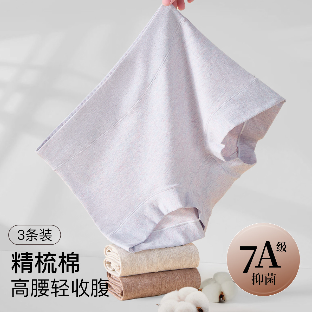 【100纯棉抑菌裆】3条装中高腰收腹柔软透气女士内裤女短裤衩 939403