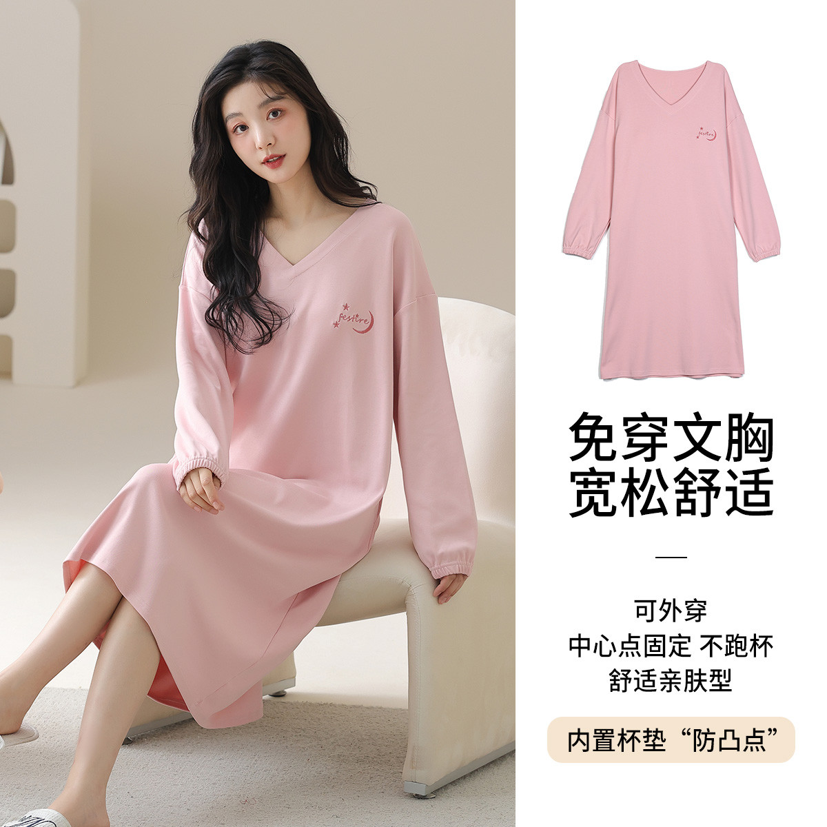 【糖果色“轻柔”内置胸垫】防走光舒适柔软纯棉家睡裙 679051