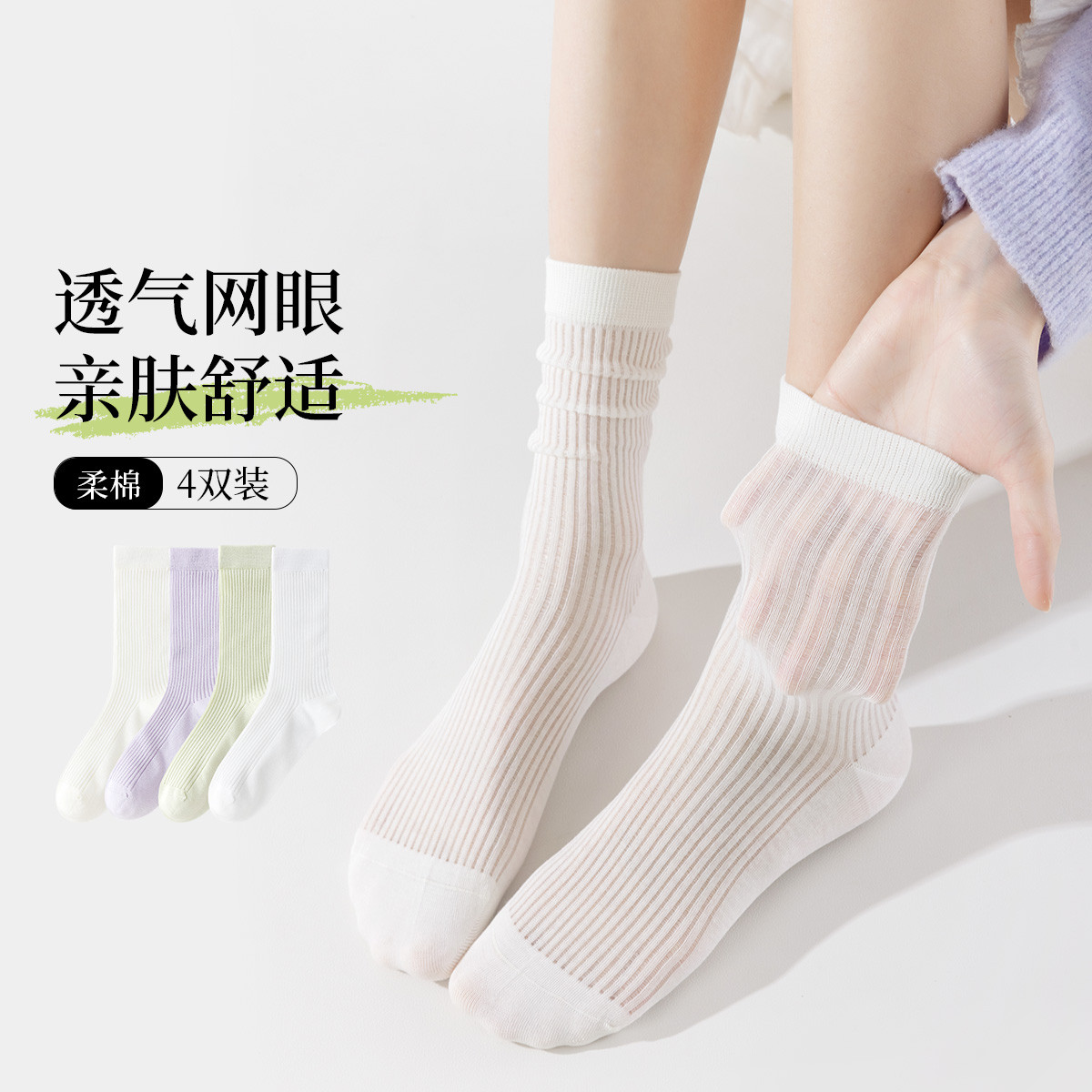 【时尚百搭】4双装柔棉中筒袜夏季薄款适气网眼女士袜子ins潮 957067