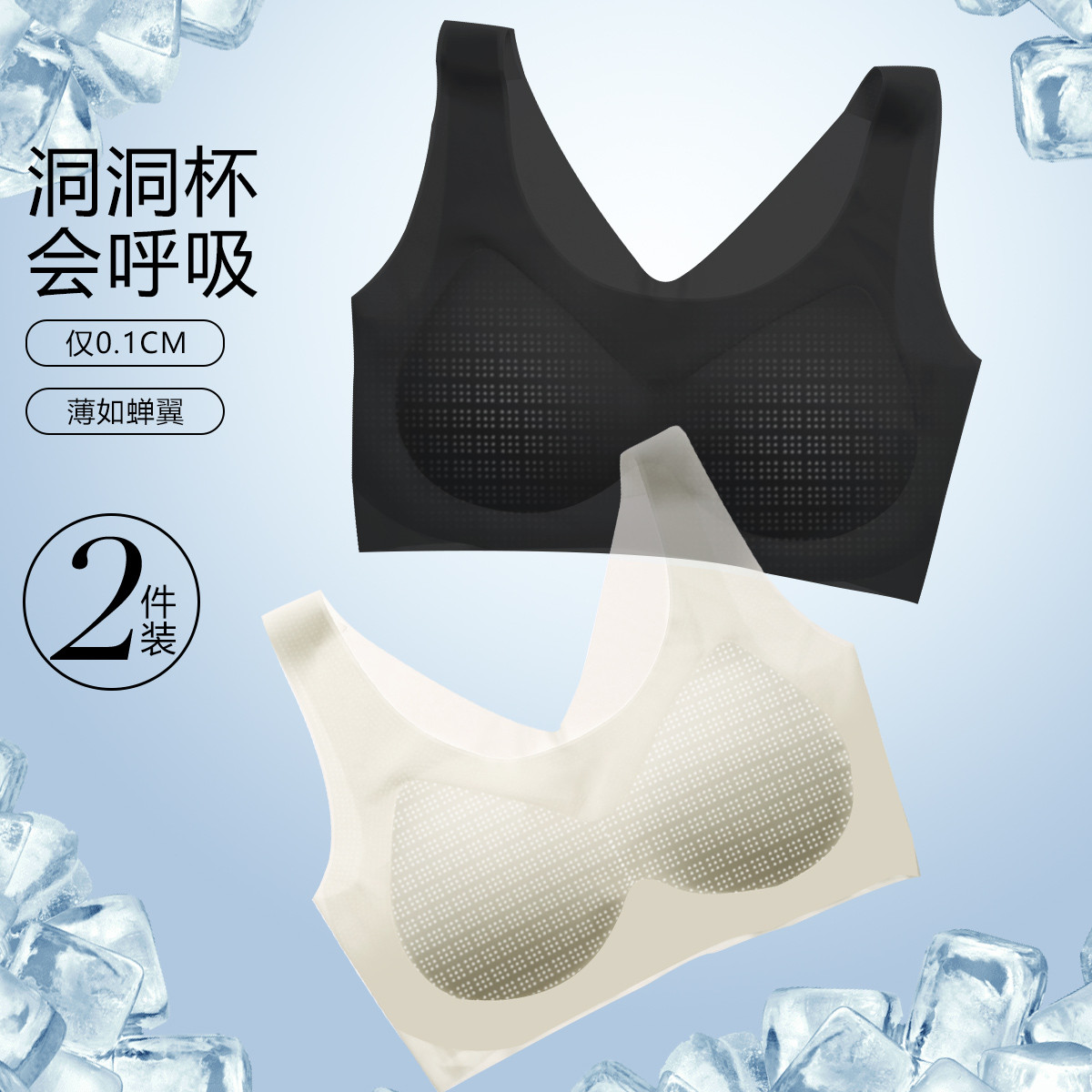 2件装夏季清凉透气洞洞无钢圈高弹宽肩带舒适无痕背心内衣文胸罩 531678