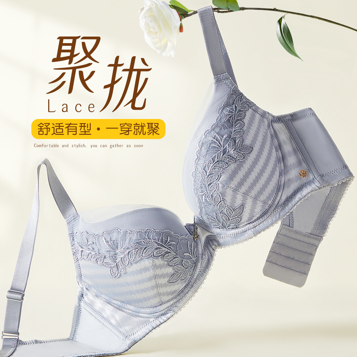 女士大胸聚拢上托内衣女舒适透气软圈蕾丝法式防下垂文胸罩 178955