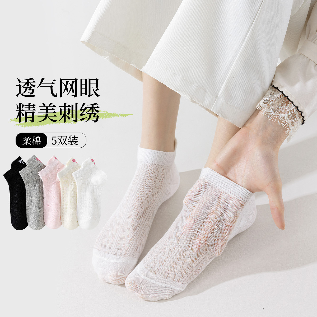 【后跟提耳 刺绣蝴蝶结】5双装柔棉短袜夏季薄款透气网眼女袜 041483