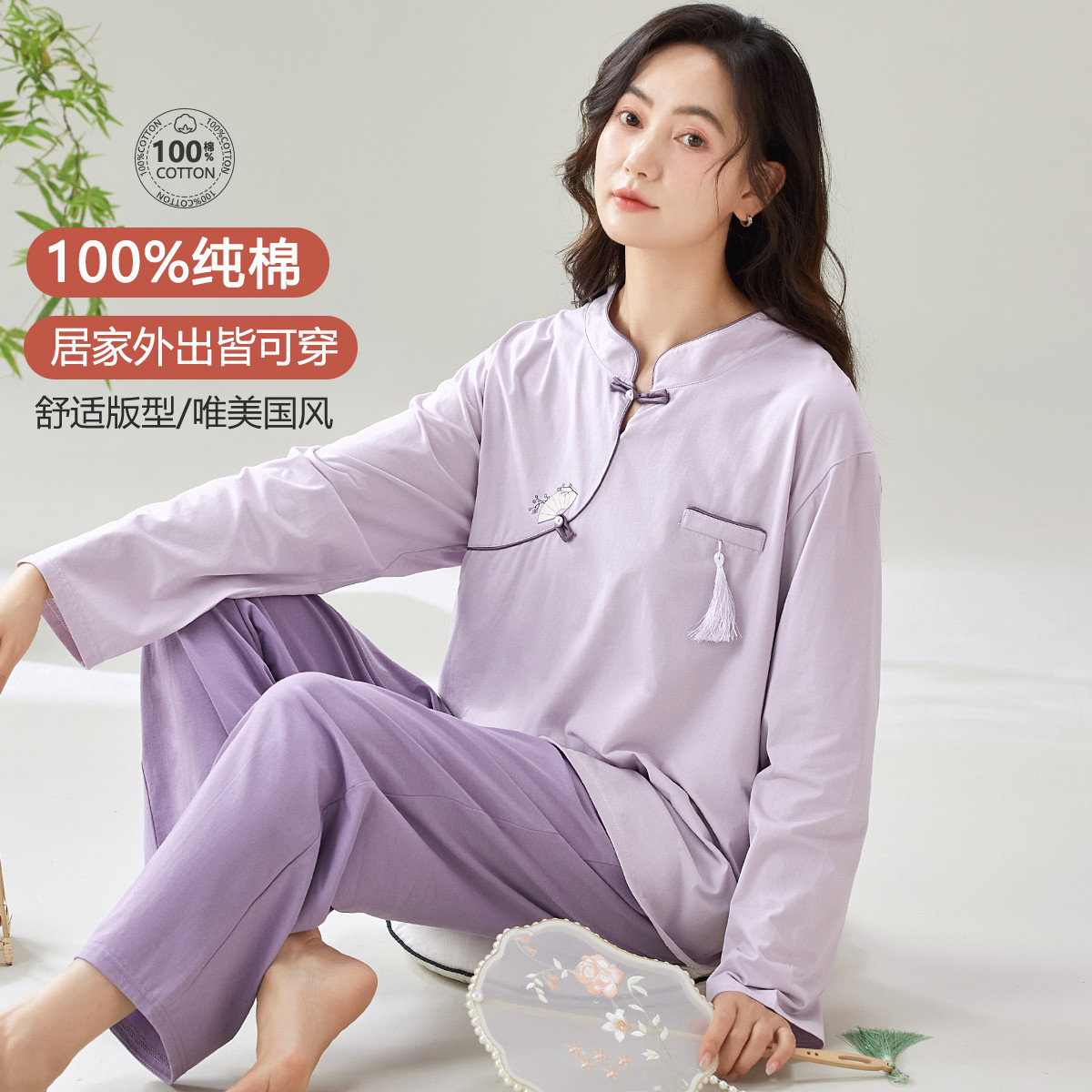 【100%棉】新中式国风高级感舒适睡衣女士家居服可外穿春秋 741406