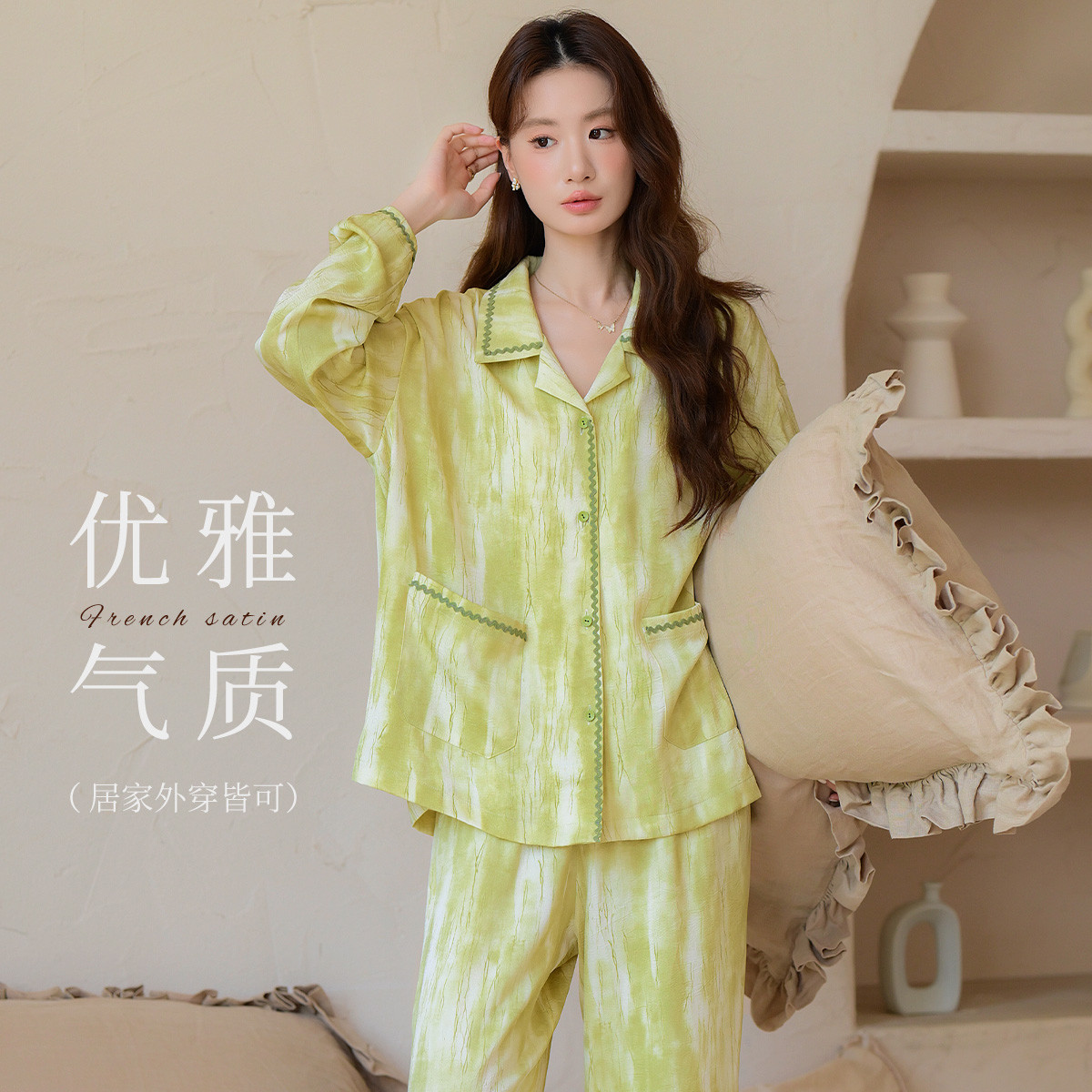 【法式优雅】高级感丝滑缎面女士冰丝睡衣春夏款可外穿家居服套装 304267