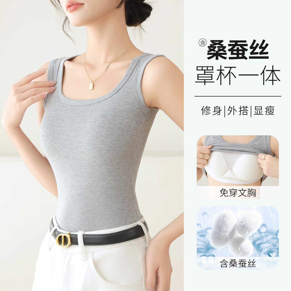 【含桑蚕丝】夏季薄款免穿文胸内衣可外穿内搭美背吊带背心内衣女 694539