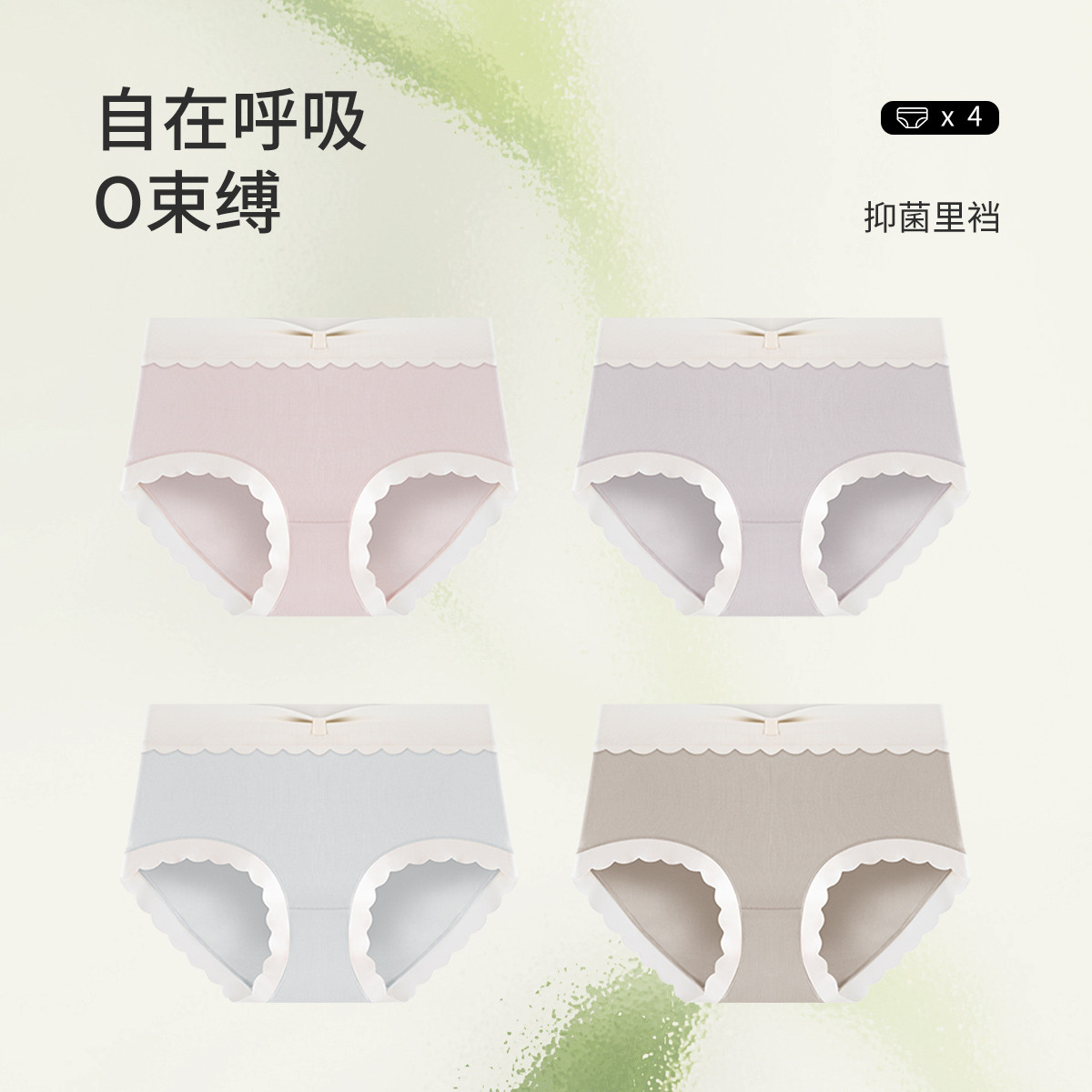 【100%棉裆】4条装无痕透气女士内裤四季花边中腰三角内裤 110219