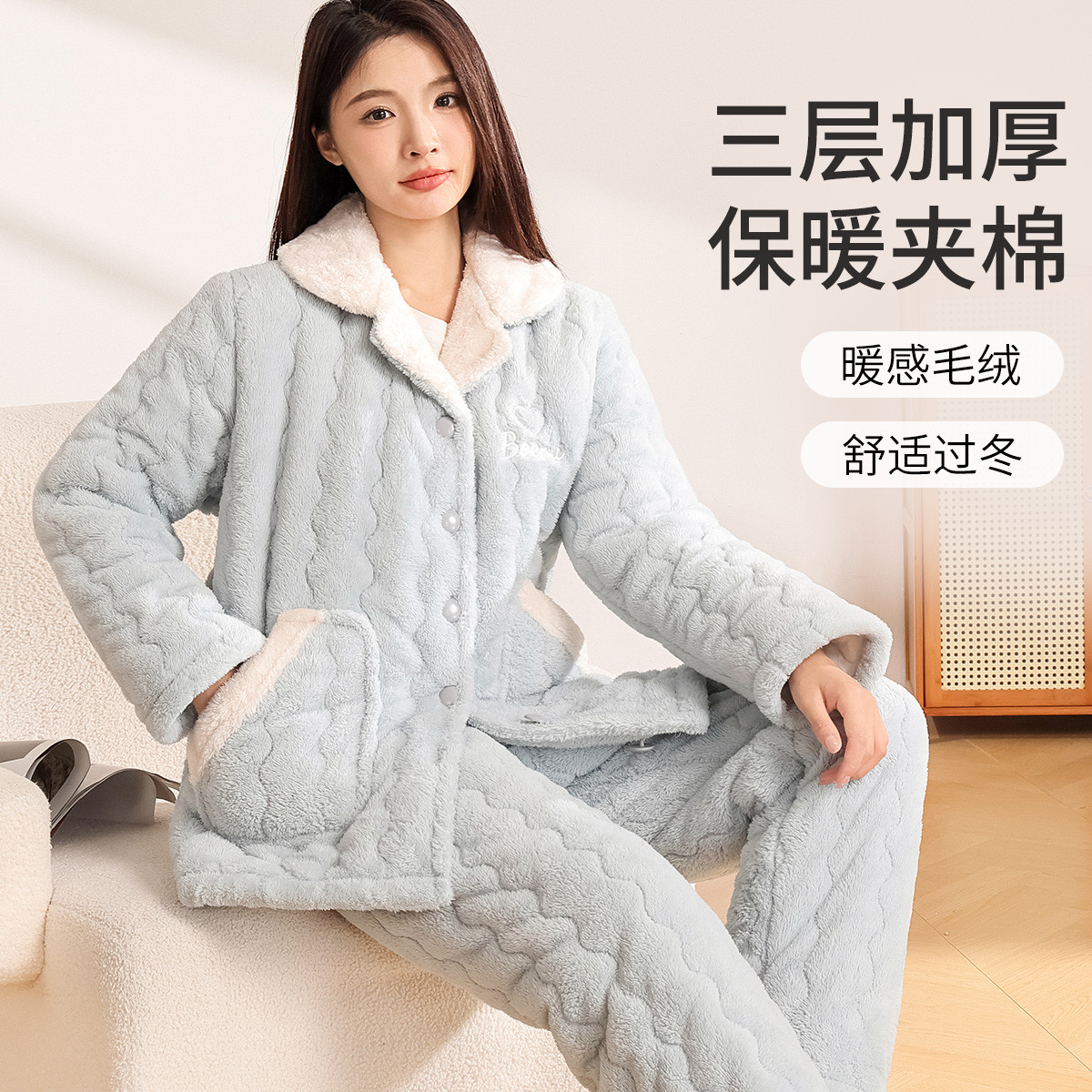 【温暖舒适】女士睡衣秋冬款长袖保暖可外穿家居服套装 054795