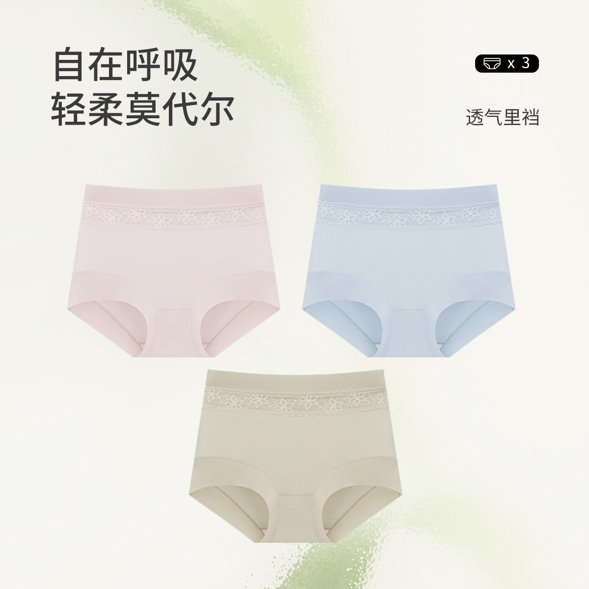 【轻柔莫代尔】3条装女士内裤含桑蚕丝透气内档裸感无痕三角裤女 744651