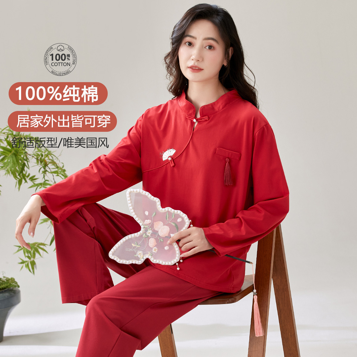 【100%棉】新中式国风高级感舒适睡衣女士家居服可外穿春秋 602142