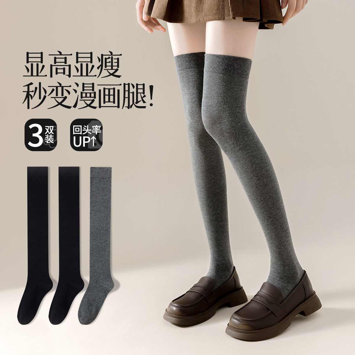 【过膝袜】3双装美腿显瘦女袜秋冬款时尚纯色长筒袜加长款堆堆袜 672011