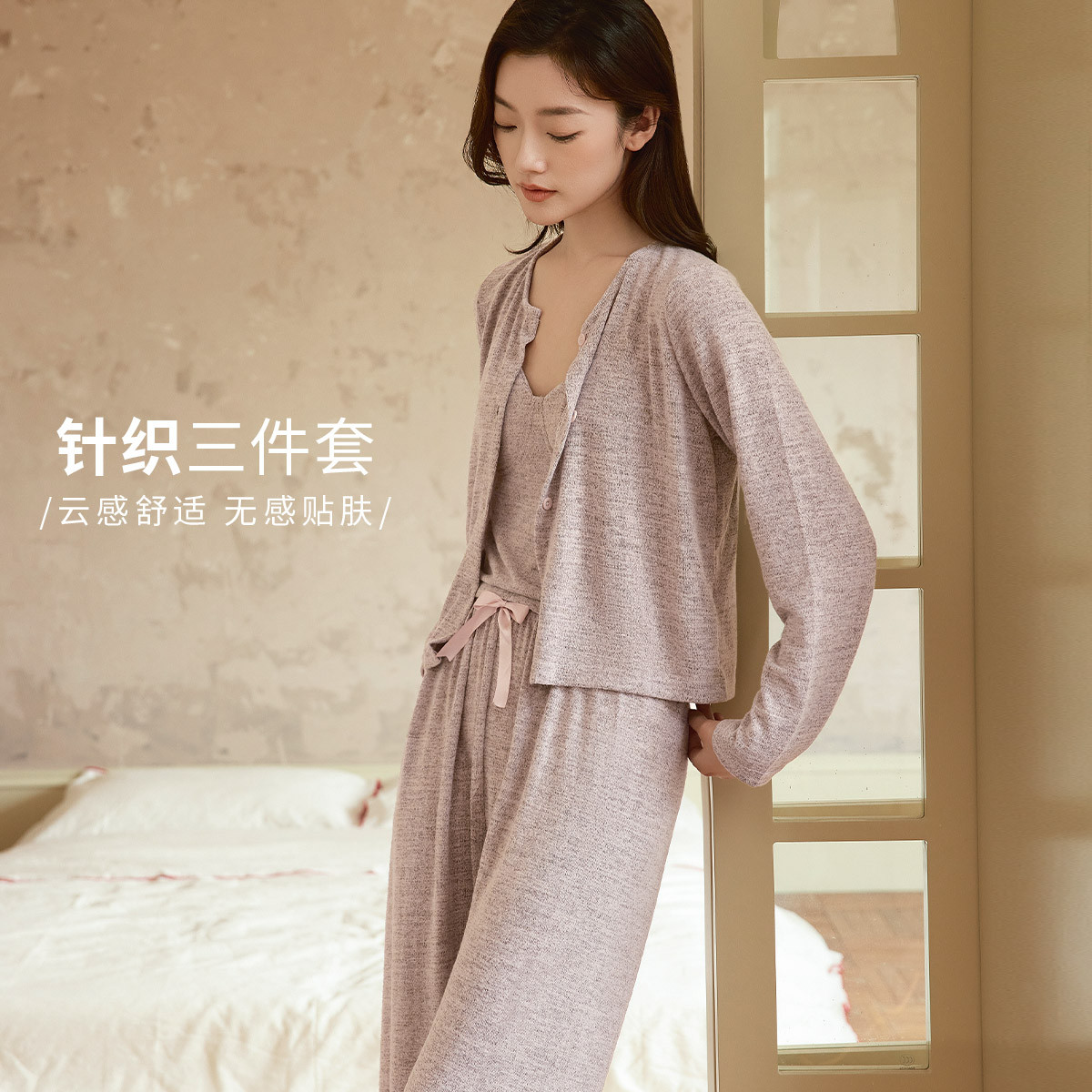 【经典优雅三件套】时尚高级感针织女士开衫家居服柔软舒适亲肤 027787