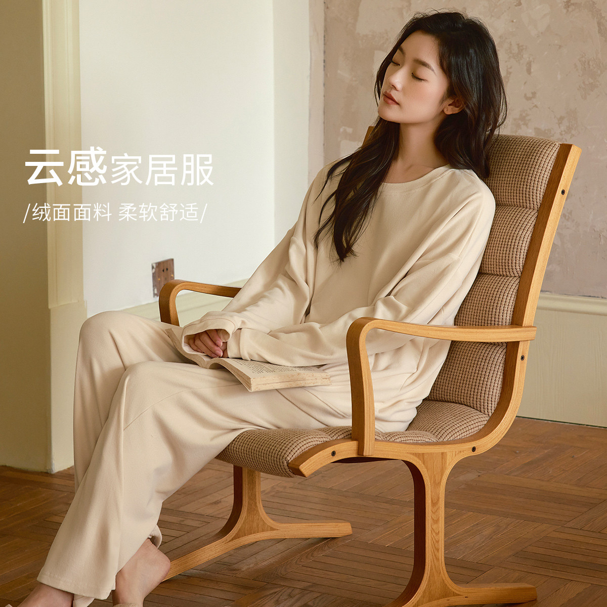 云感绒面纯色圆领休闲睡衣女士入秋家居服柔软舒适亲肤百搭可外穿 969931