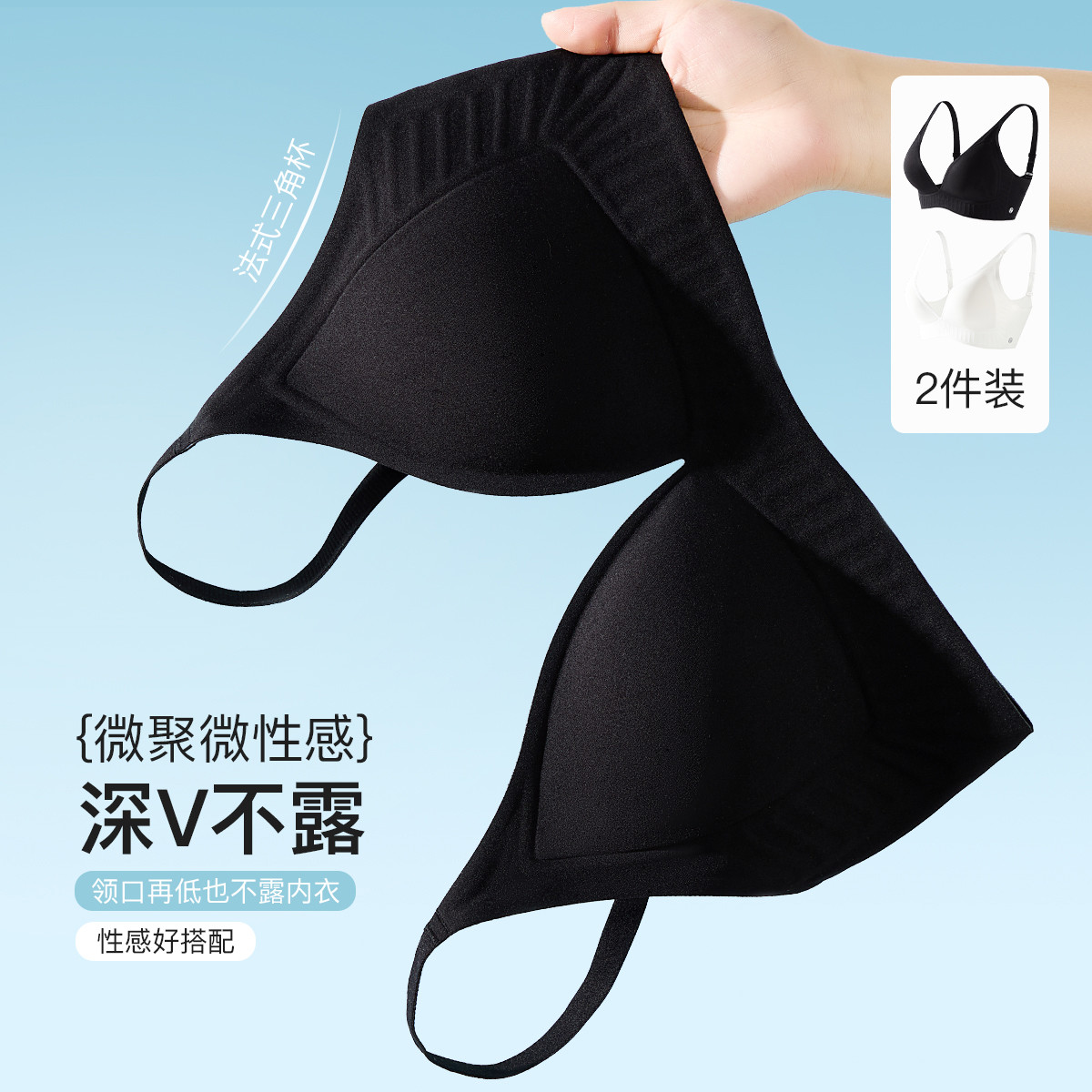 【2件装】内衣女软支撑文胸聚拢收副乳深V无钢圈防下垂文胸罩女 391947