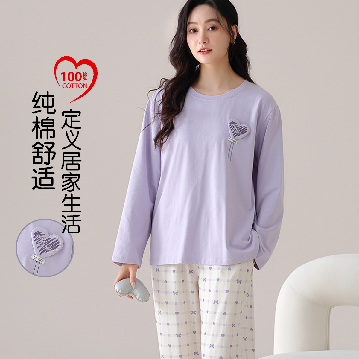 【100%棉】可外穿家居服套装女士春秋款高级感长袖长裤睡衣 607883