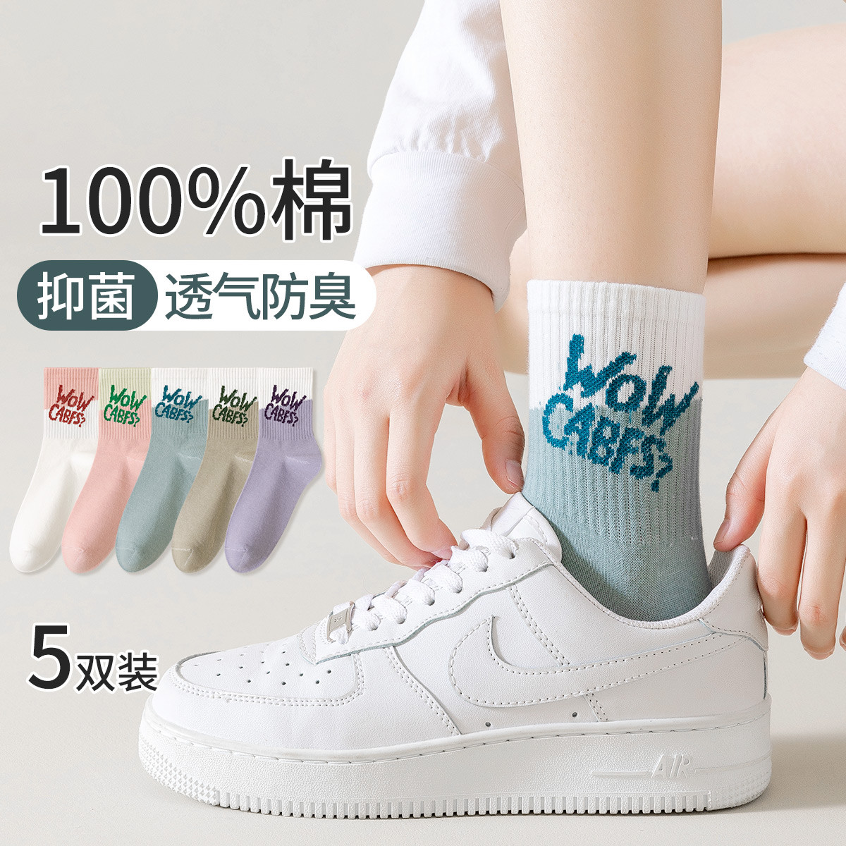 【100%棉】5双装女士袜子女春秋款时尚潮流ins学生袜女袜 513483