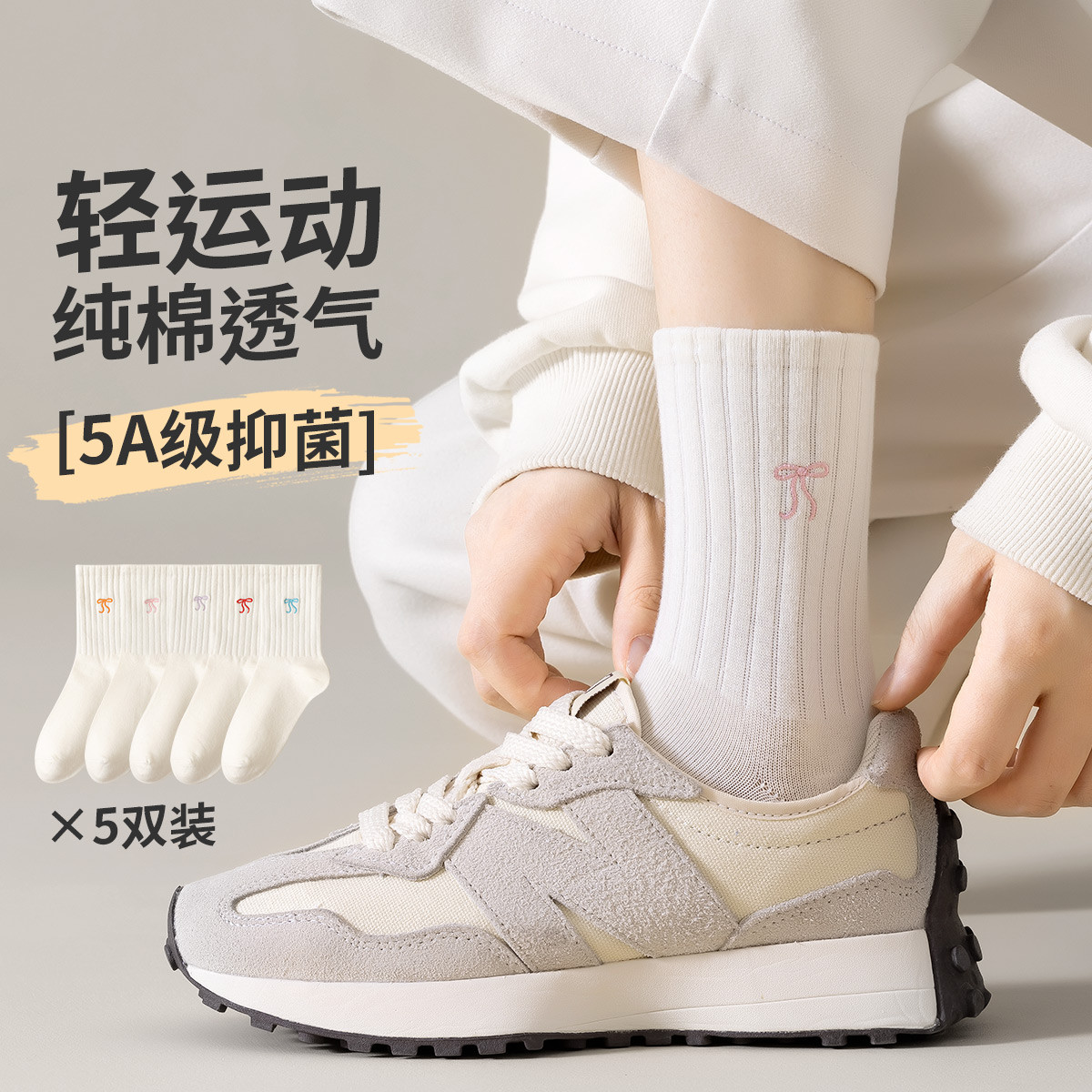 【100%棉抑菌防臭】5双装春秋款女袜月子袜配小皮鞋堆堆女袜 505291