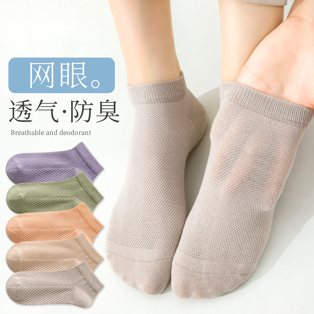 5双装女士袜子女夏季薄款纯色棉袜网眼透气绵柔亲肤时尚百搭女袜 856651