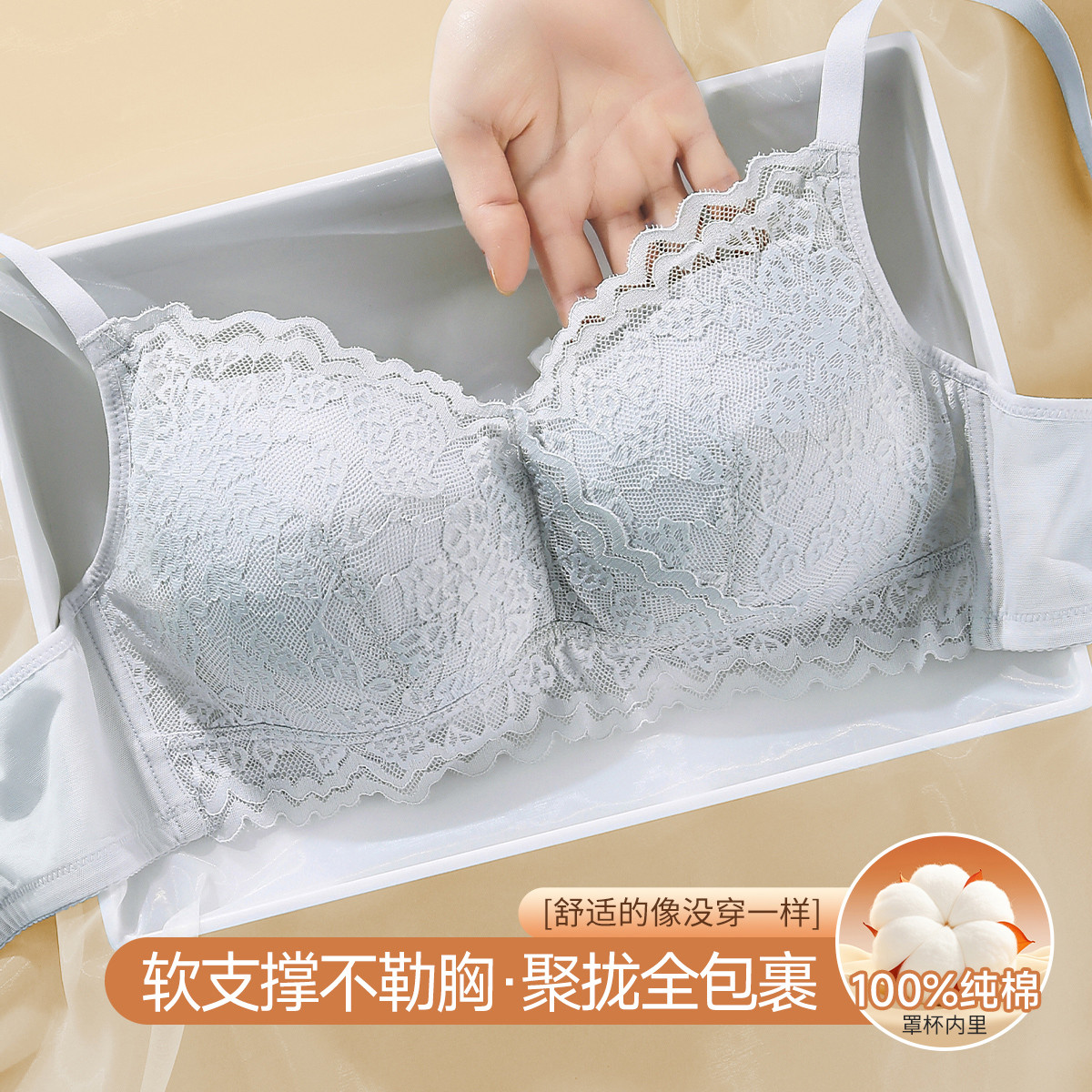 【100%纯棉里杯】无钢圈内衣女性感蕾丝防下垂收副乳文胸罩女 756939