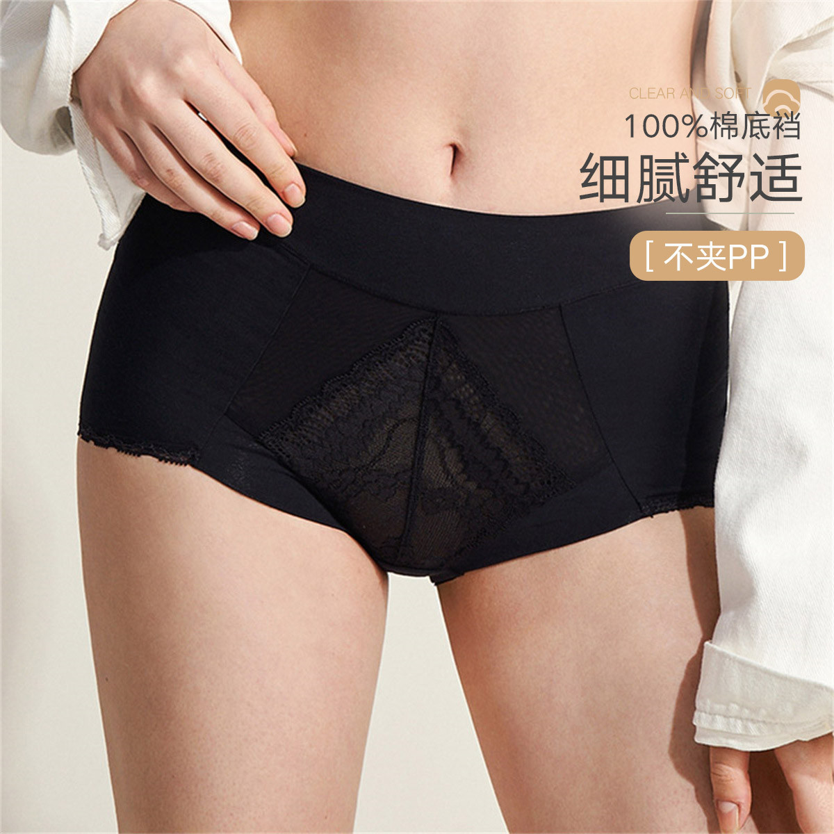 【舒柔包臀高腰轻收腹】高腰低脚裤性感蕾丝内裤女士棉质底档底裤 749019