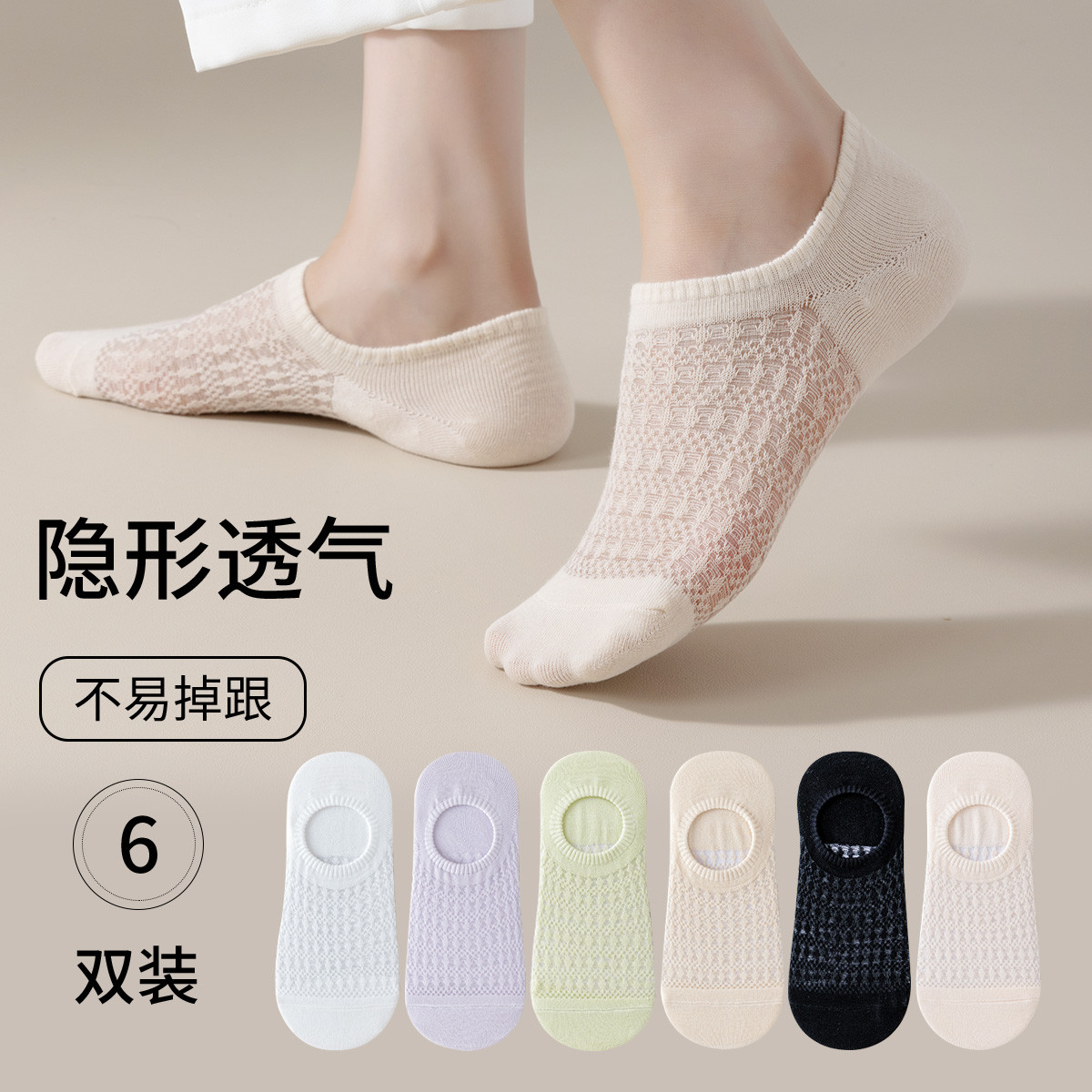 【透气网眼隐形船袜】6双装女士船袜女隐形防滑浅口短袜女夏季薄 214667