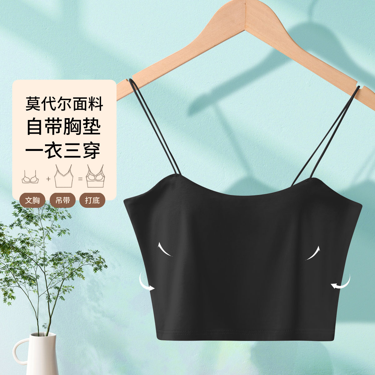 莫代尔女士夏季一体式时尚无痕美背自带胸垫聚拢可外穿吊带背心女 566622