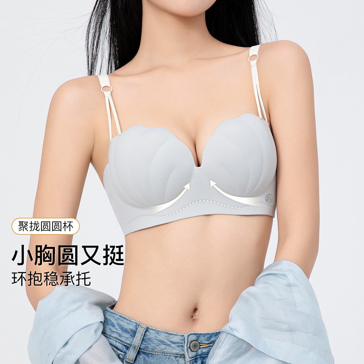【小胸聚拢贝壳杯】内衣无痕立体显大软支撑漫画美背无钢圈文胸罩 285259