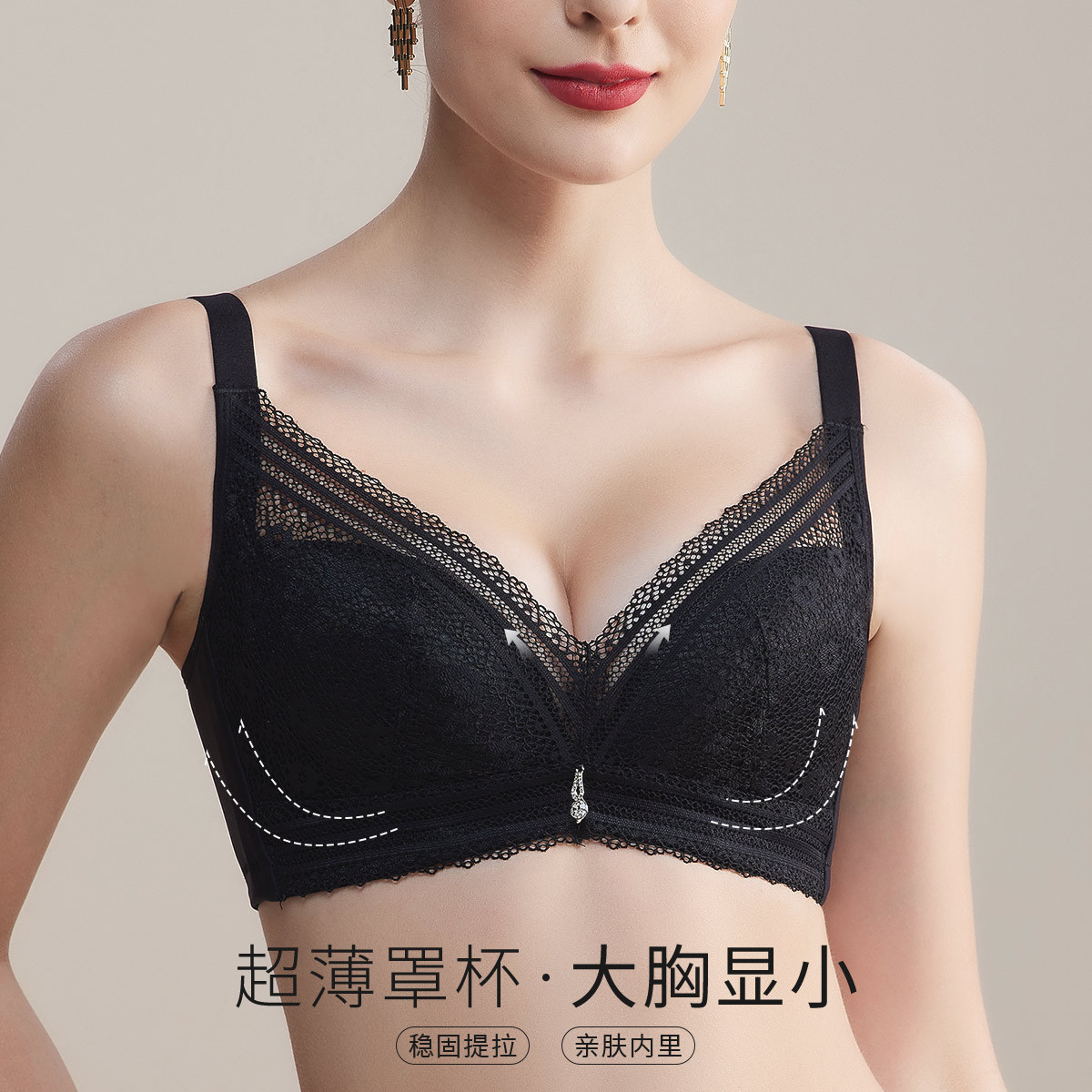 【聚拢防下垂】无痕光面蕾丝拼接内衣女透气提拉聚拢无钢圈文胸罩 579230