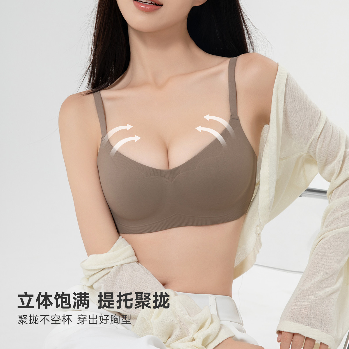 【无痕一片式】光面隐形内衣小胸聚拢提拉侧收副乳无钢圈文胸罩女 877835