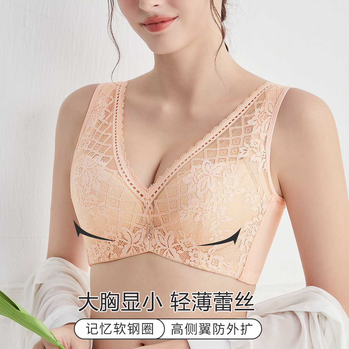 【舒适宽肩带】高弹侧收聚拢防下垂蕾丝轻薄透气无痕内衣文胸罩 970782