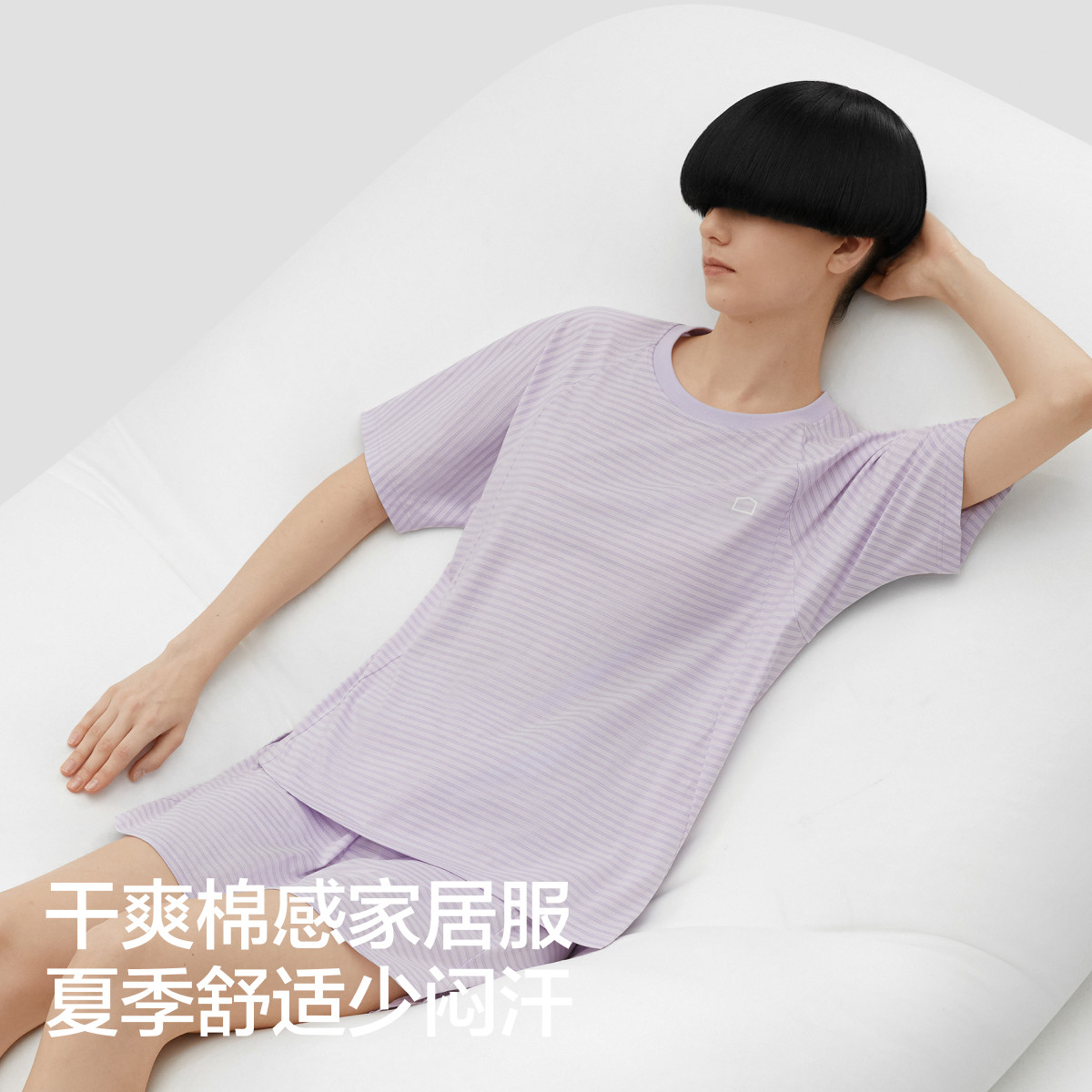 棉棉507S睡衣女士短袖短裤抑菌防螨舒适凉感透气条纹家居服 807045