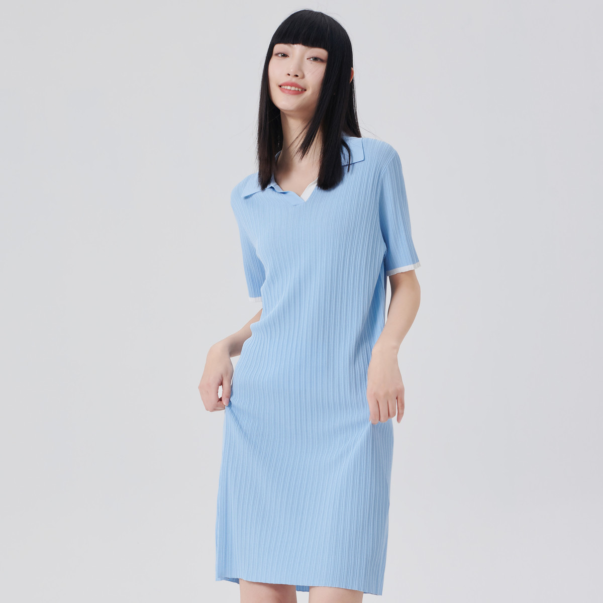 【商场同款】随性肌理针织裙女短袖连衣裙女中长款直筒裙子女 899606