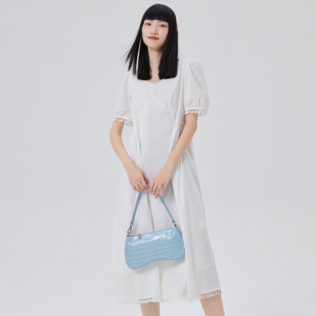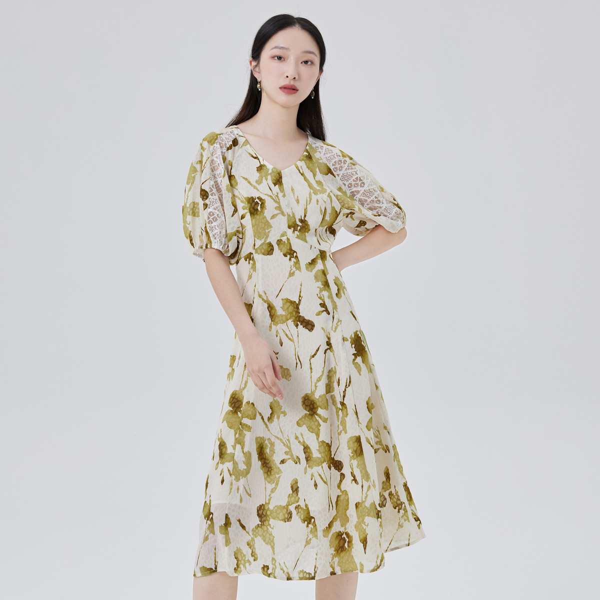 【商场同款】优雅减龄泡泡袖连衣裙短袖A字裙子女式长裙 328726