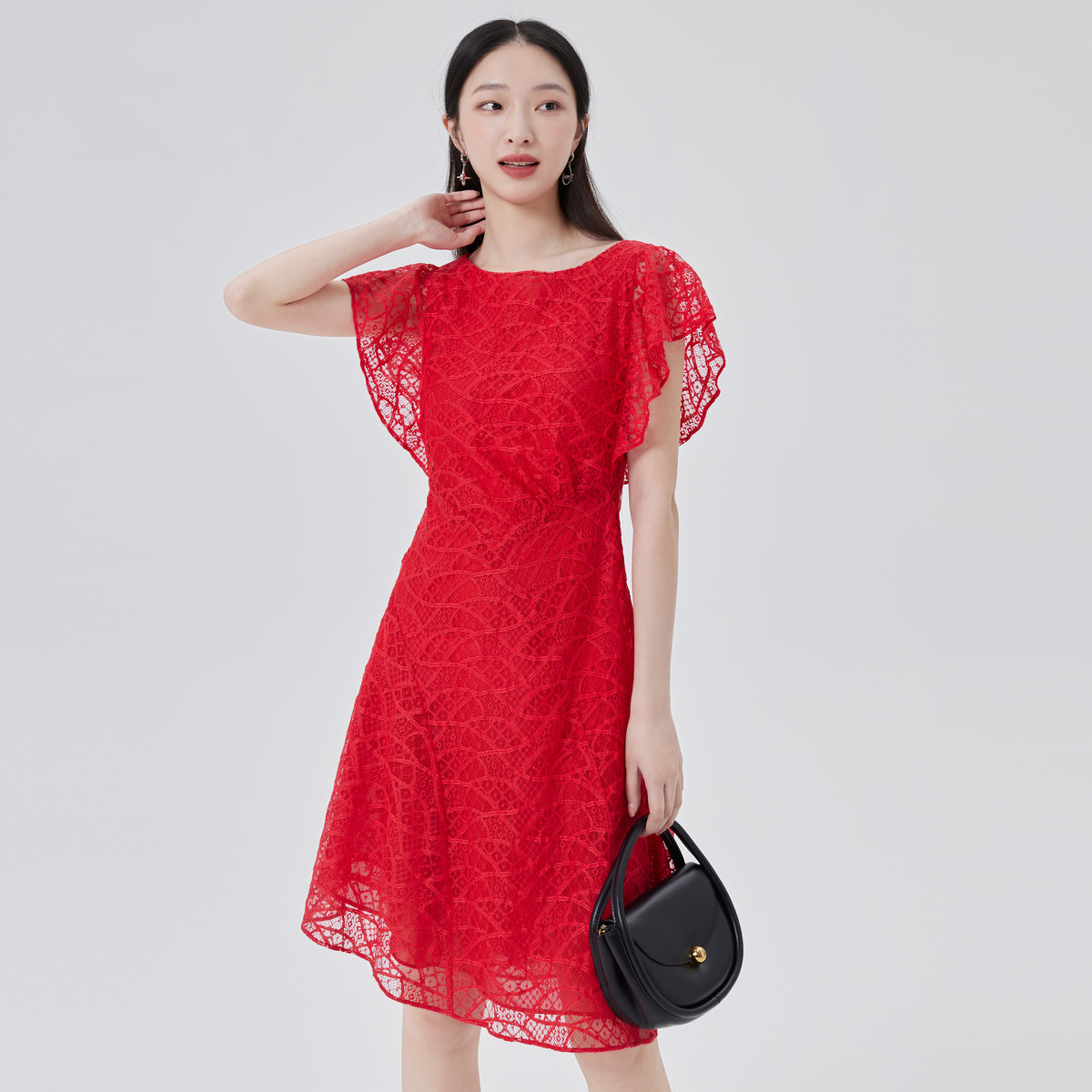 【商场同款】显瘦A字裙子女荷叶边飞袖连衣裙女中长裙 117334