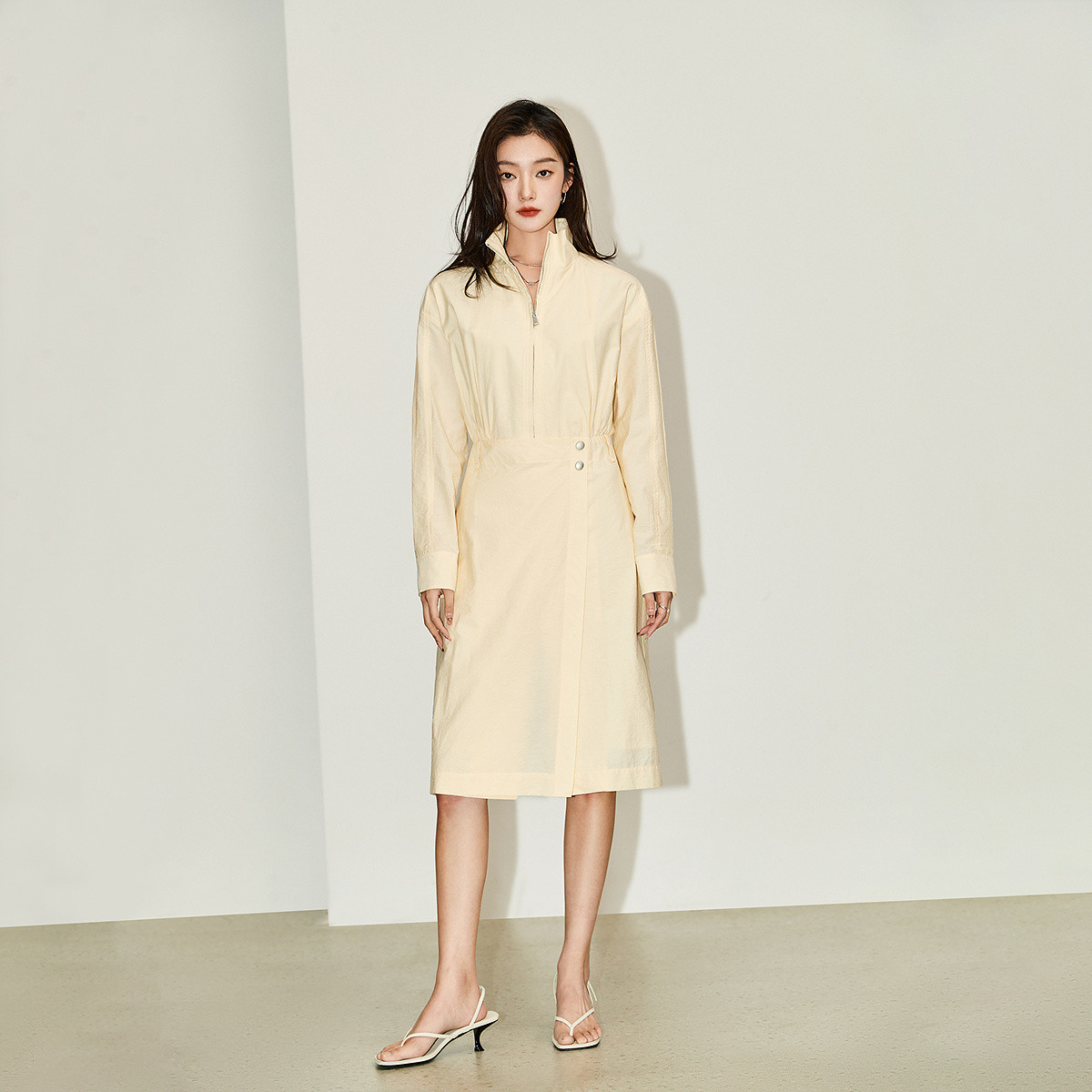 时尚都市通勤款纯色显瘦长款高腰风衣式连衣裙 156827