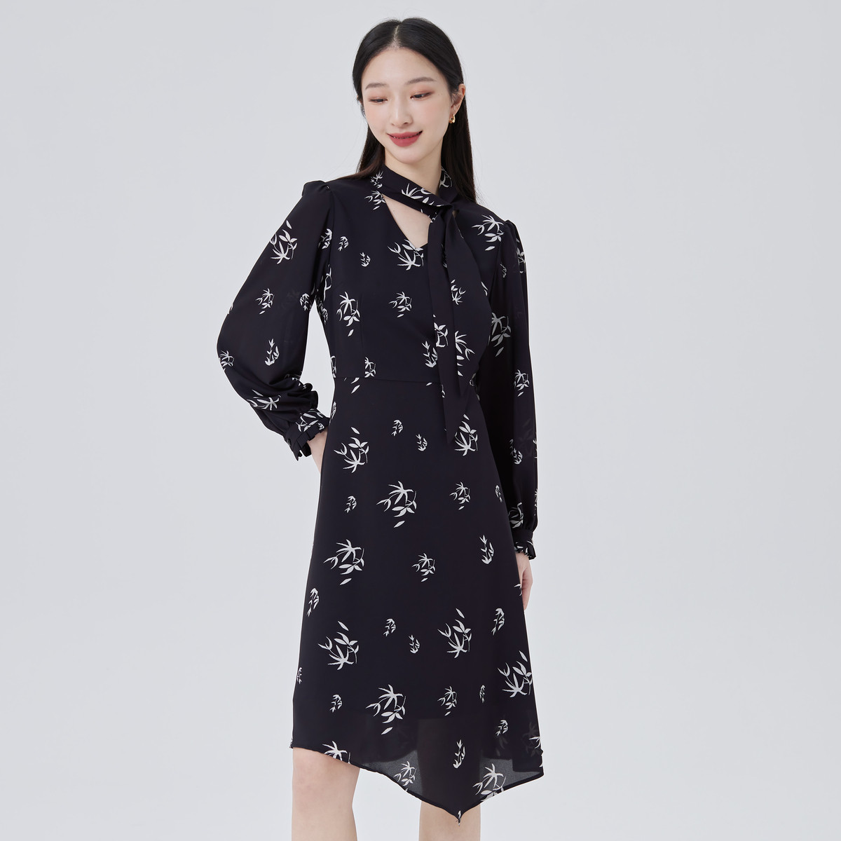 【商场同款】优雅气质衬衫裙子女长袖飘带修身显瘦连衣裙 039510