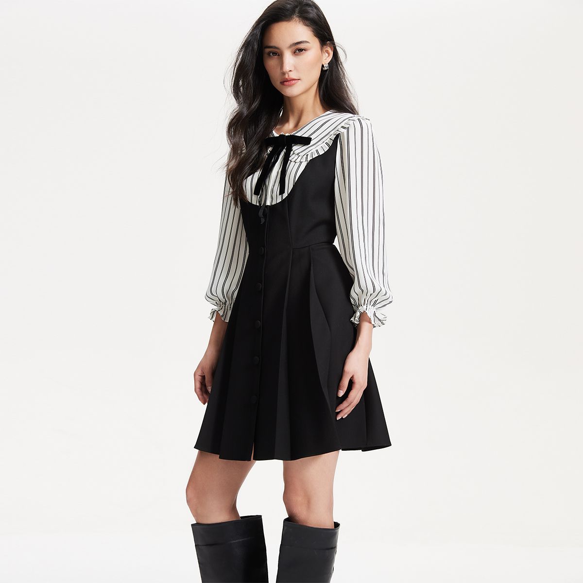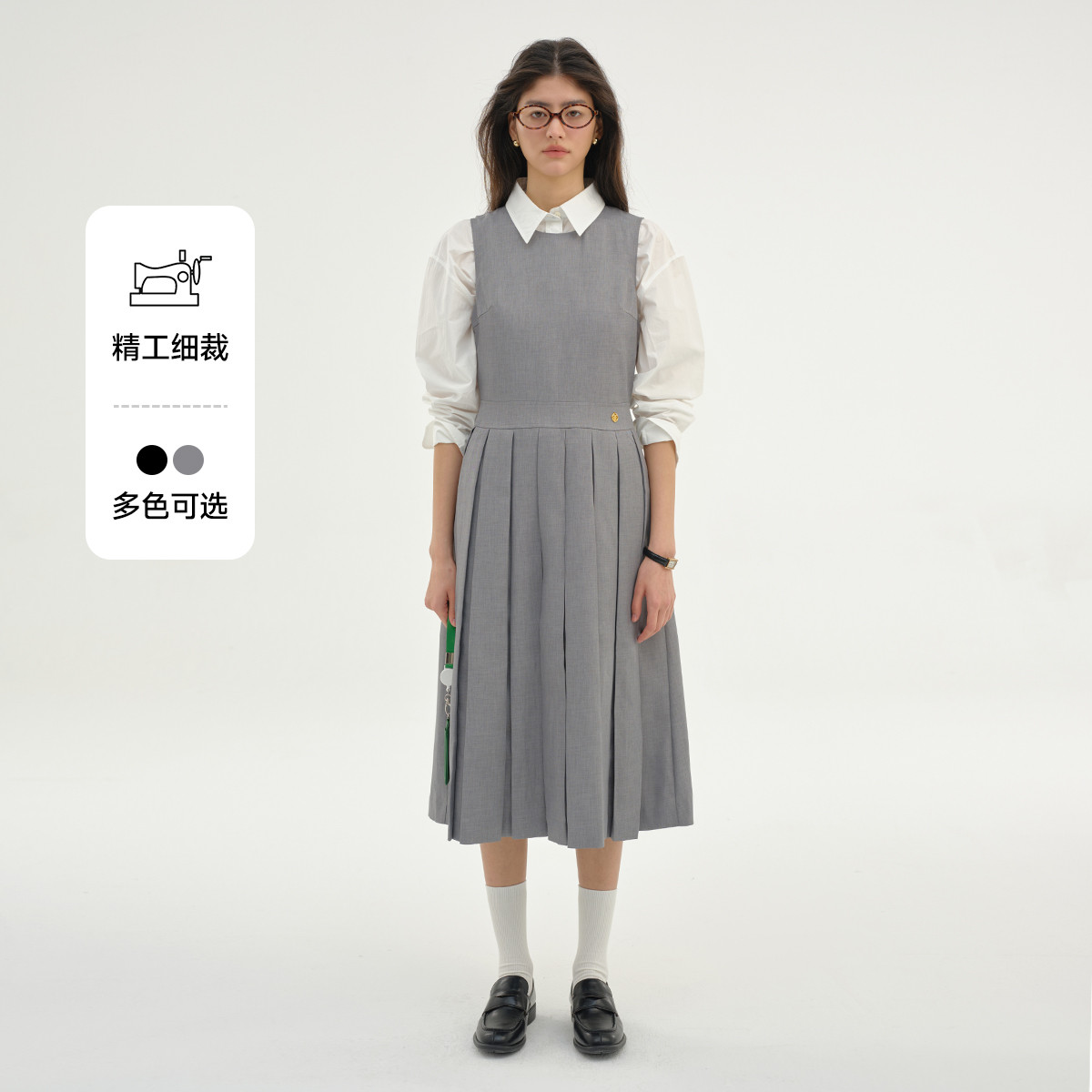 无袖连衣裙小熊春秋款收腰百褶长裙通勤高级感连衣裙女 181953