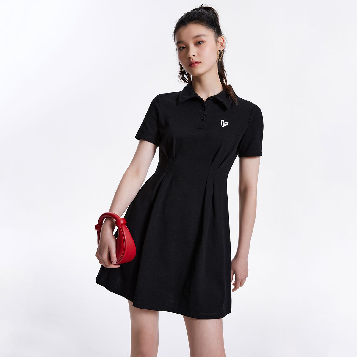 【收腰A版版型】年夏减龄翻领印花短袖polo裙显瘦连衣裙 711313