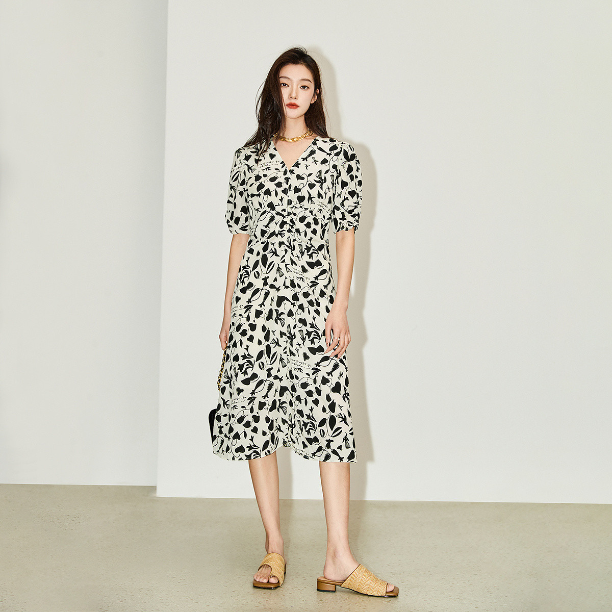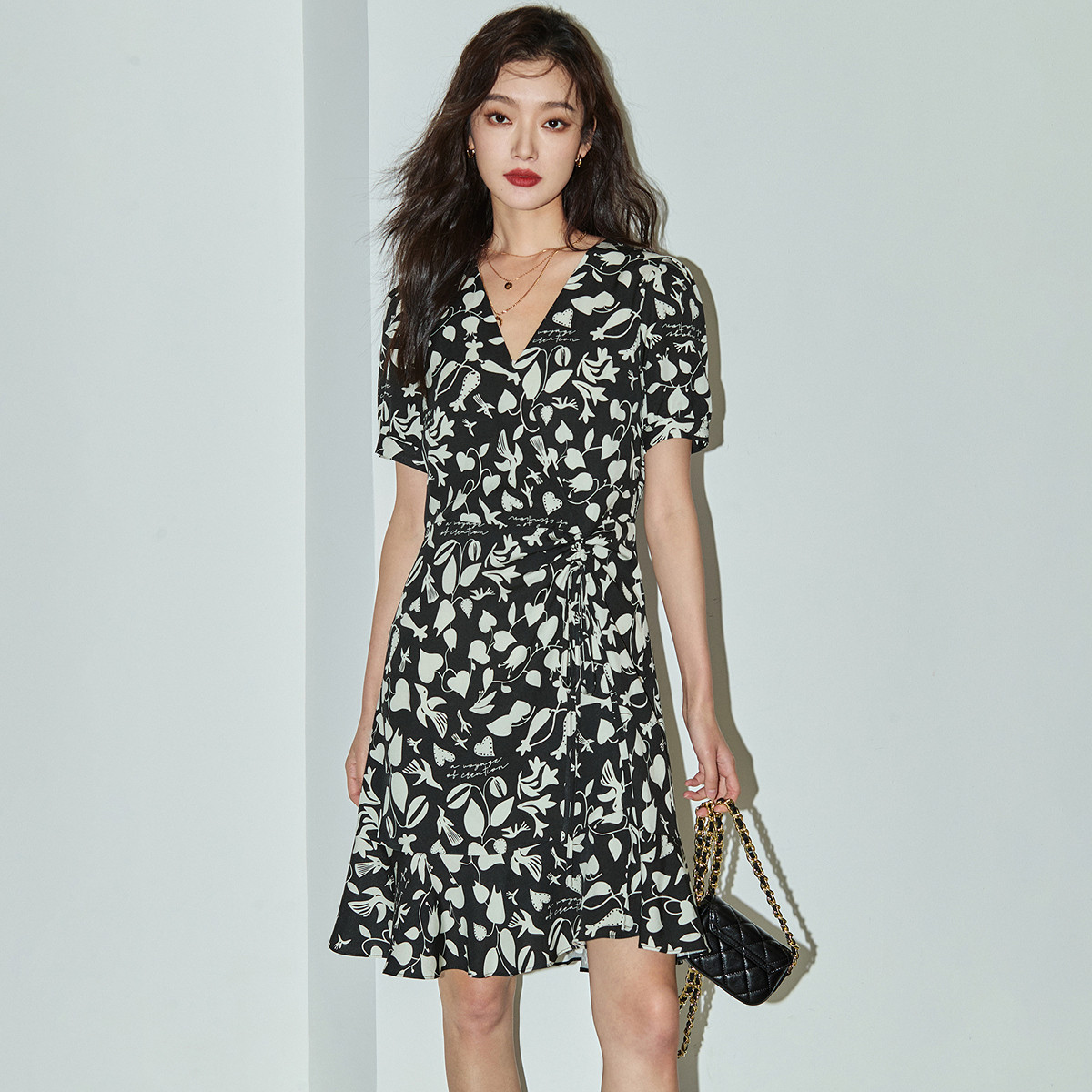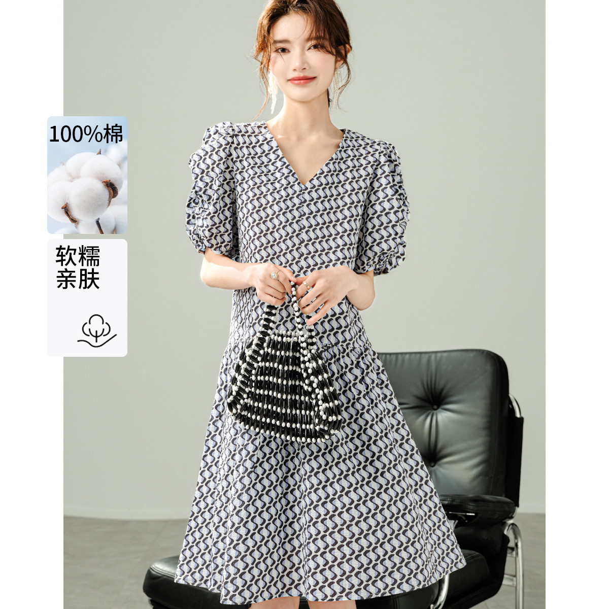 【商场同款】24夏款印花泡泡袖V领连衣裙 517083