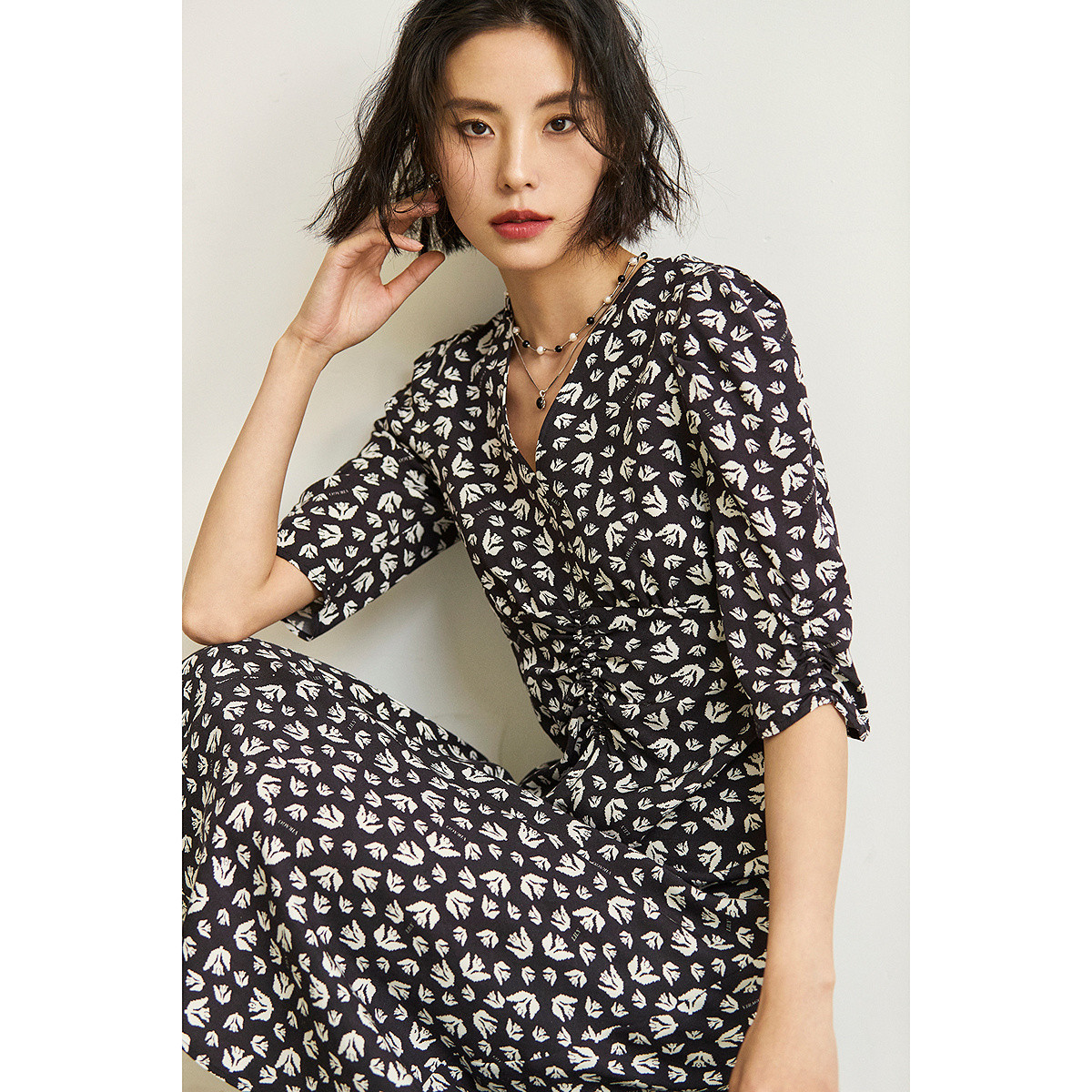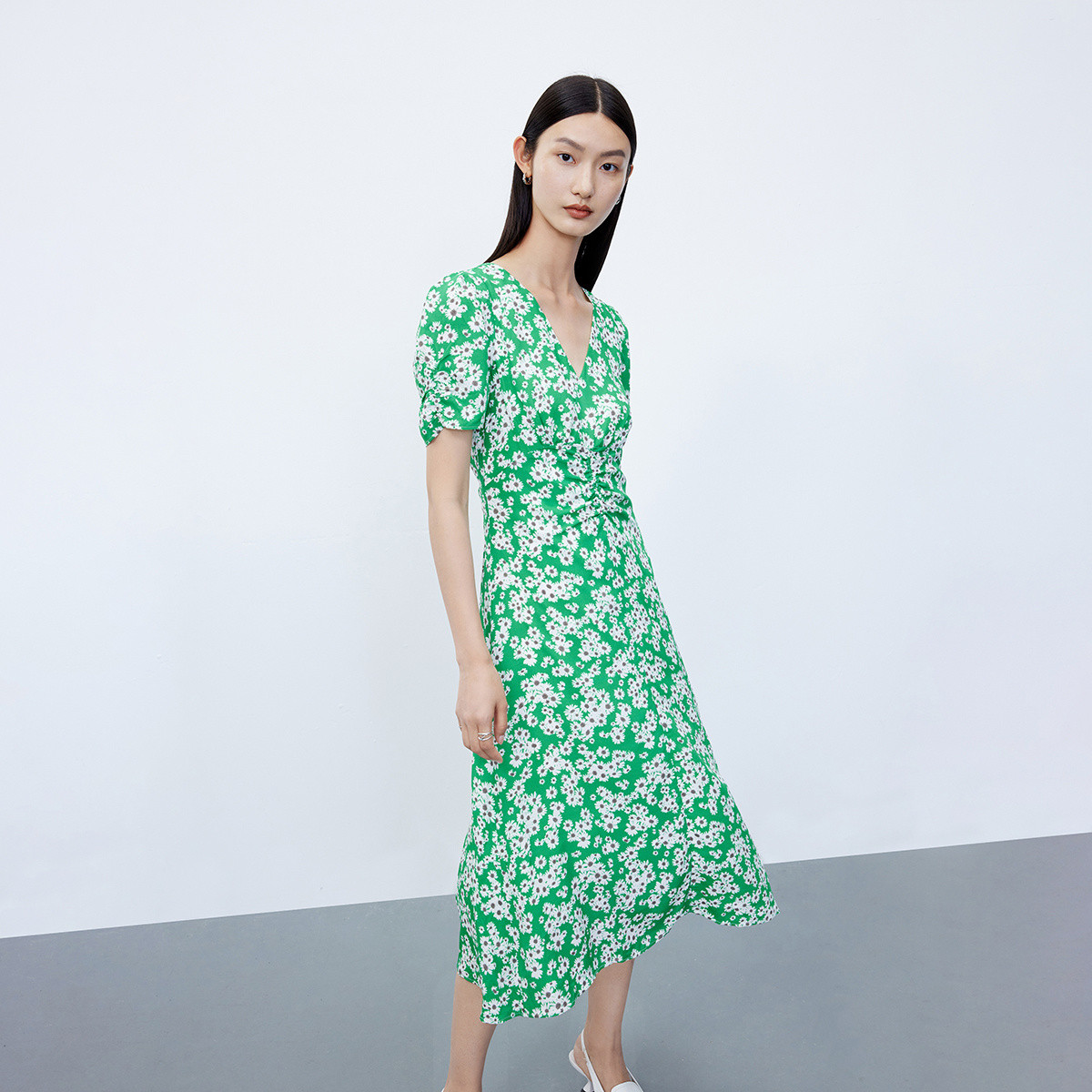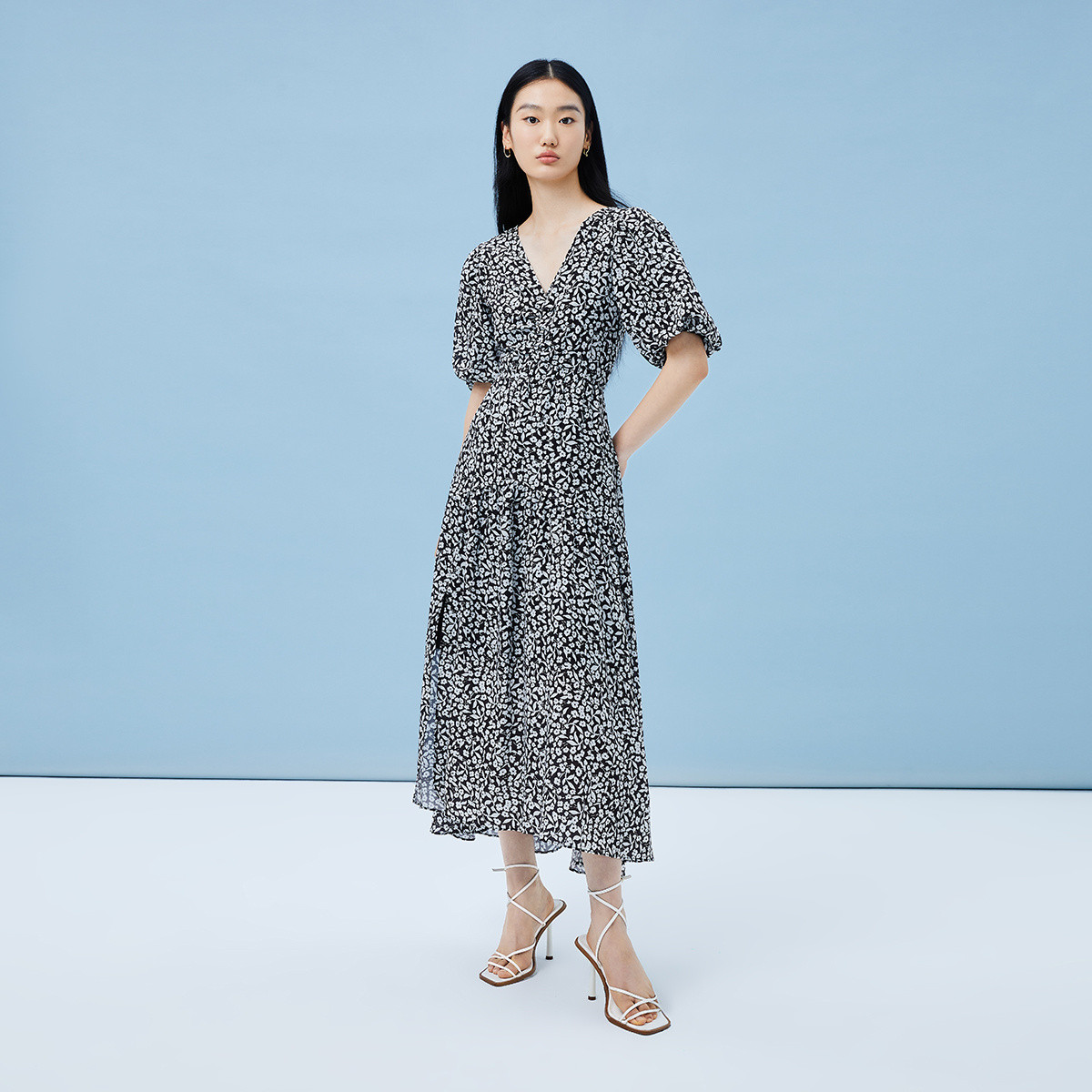 【商场同款】24夏款印花泡泡袖V领连衣裙 517083