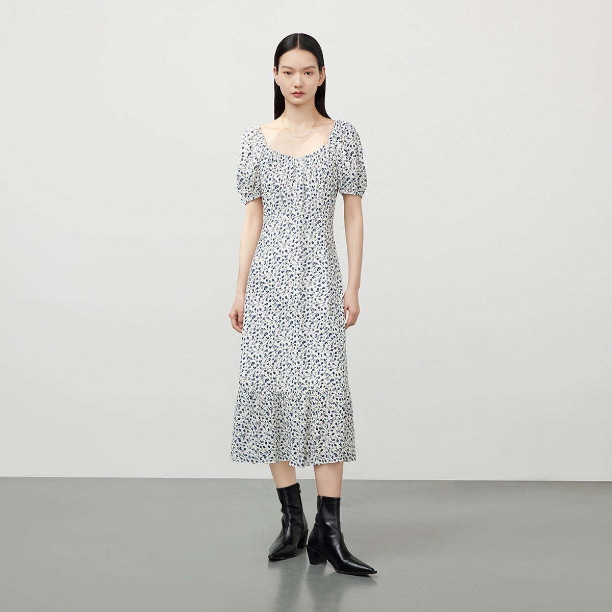 【商场同款】夏季裙子女优雅气质裙子复古方领高腰连衣裙女 114587