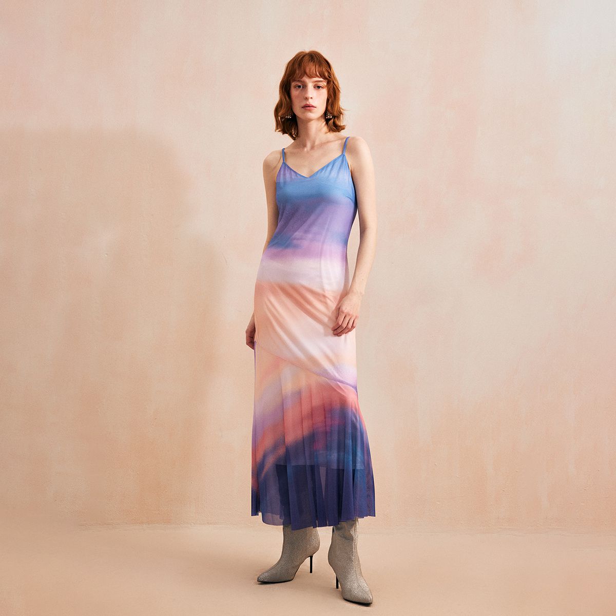 【V领设计】渐变色印花吊带裙子时尚度假风气质连衣裙 464977
